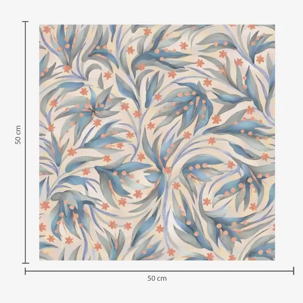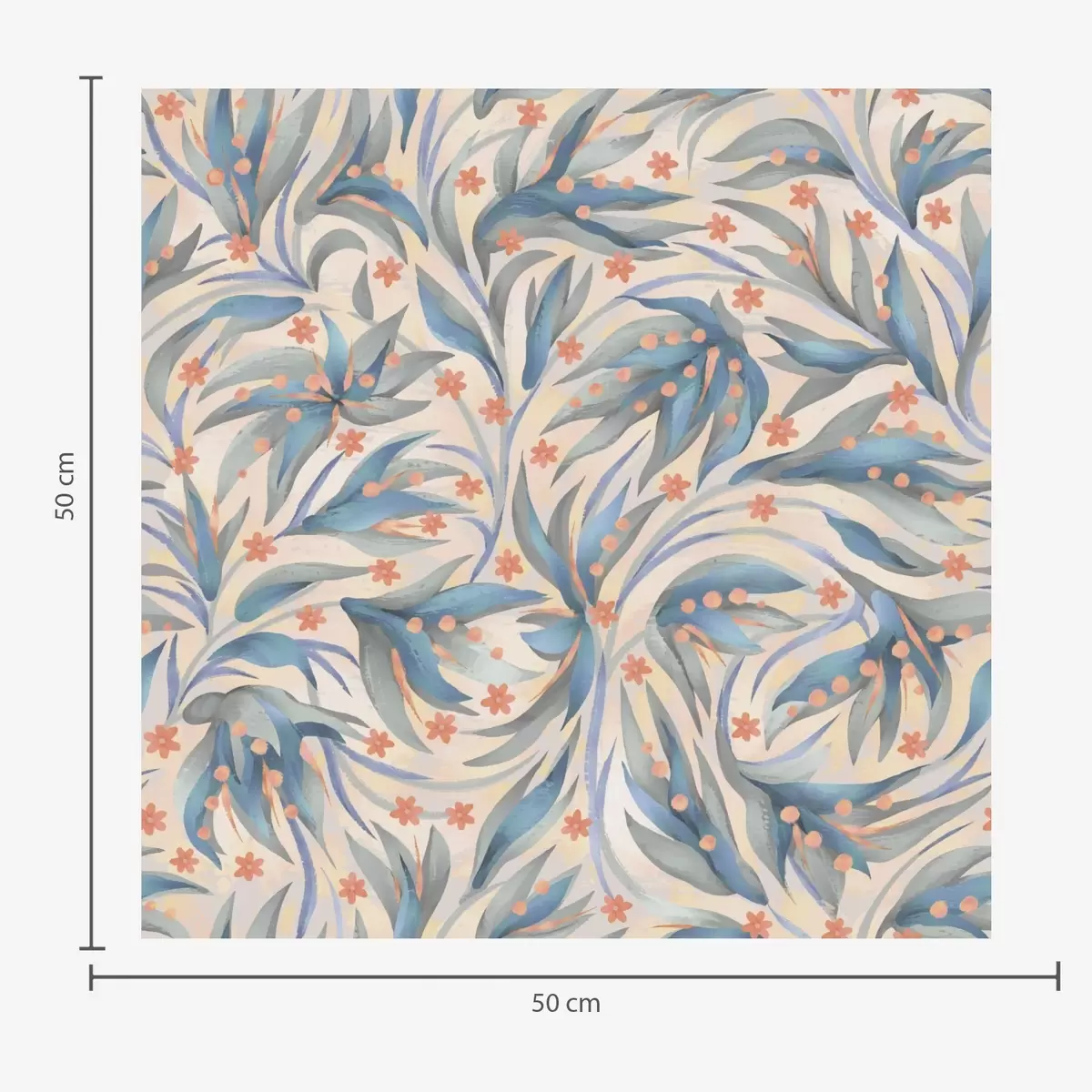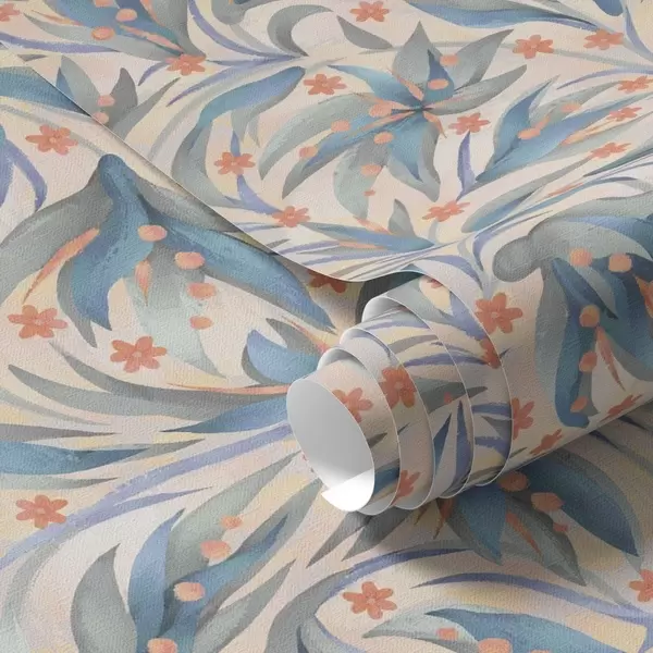 Tapet Abstrakt blått løvverk med korallblomster Nr. a00852