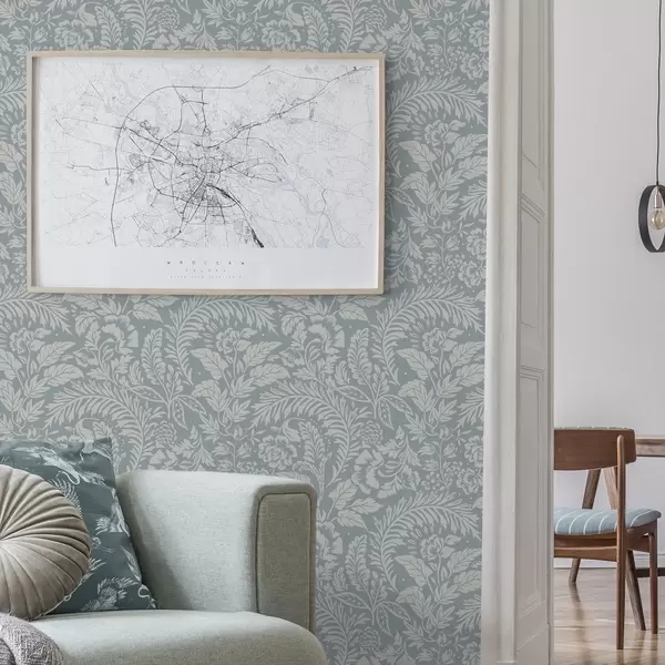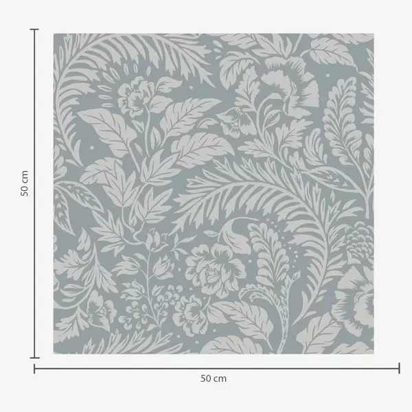Tapet Monokromt blomstermønster på gråblå bakgrunn Nr. a00859