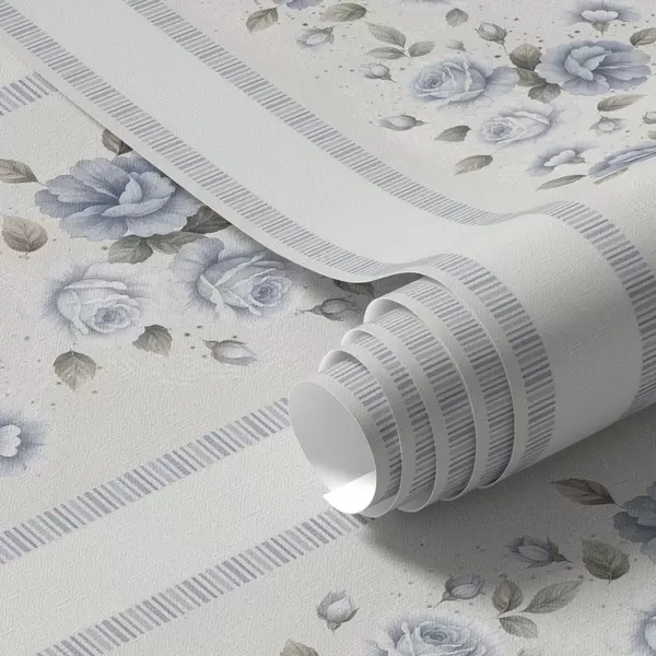 Tapet Blå roser i vertikale bånd på lys bakgrunn Nr. a00860