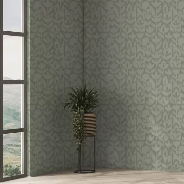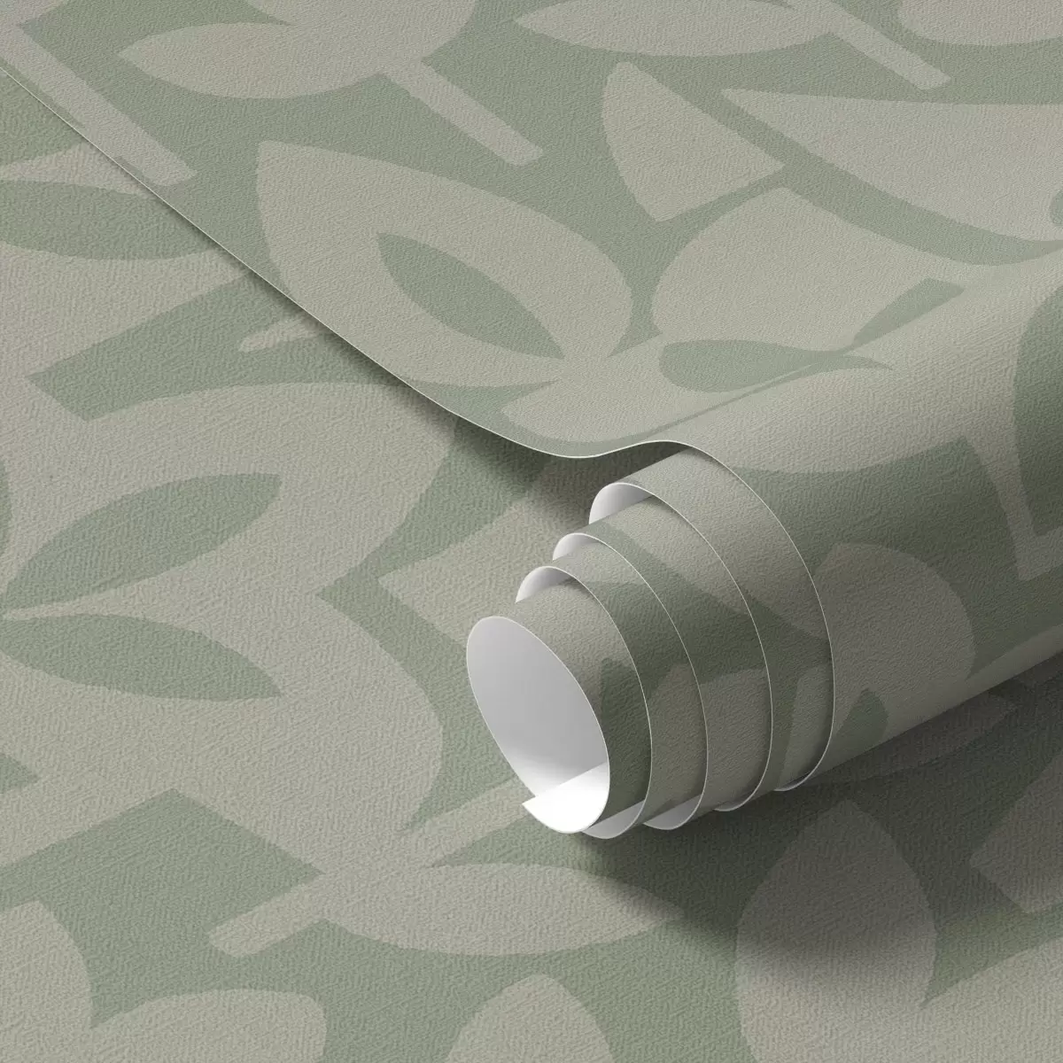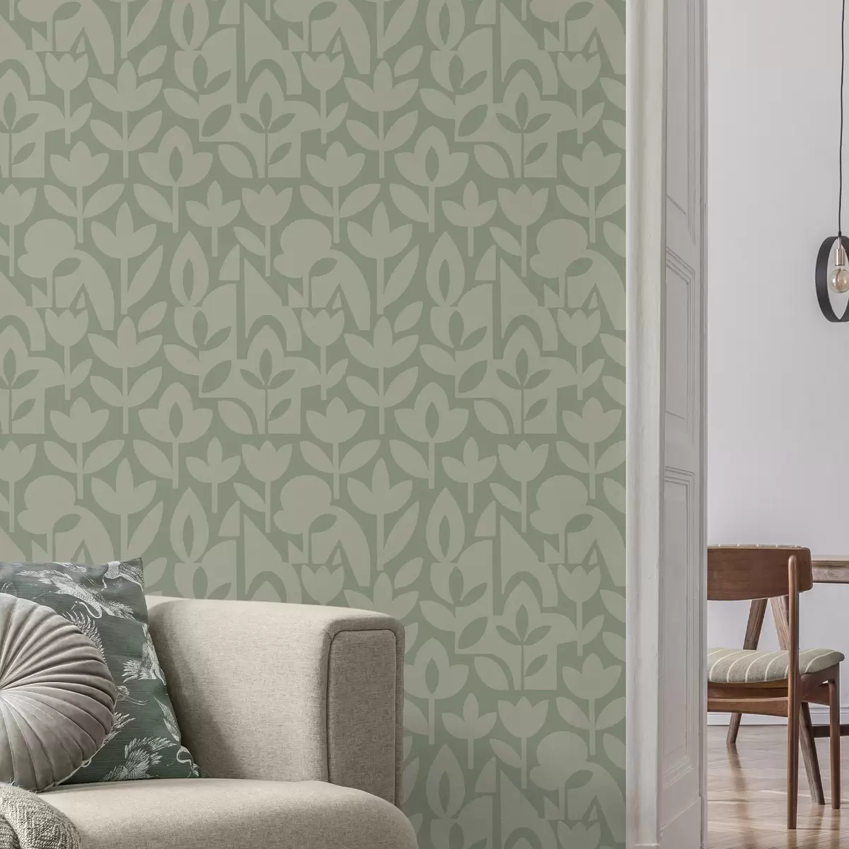 Tapet Geometriske blomstersilhuetter i myk salvie Nr. a00875v1