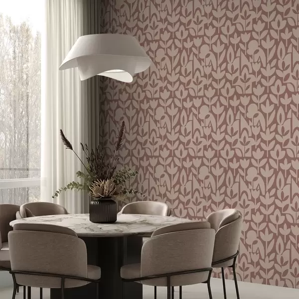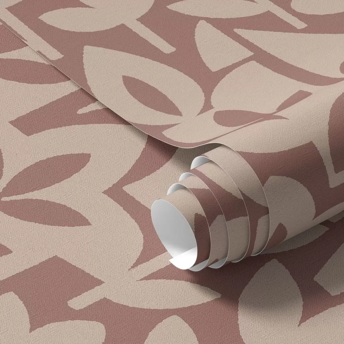 Tapet Geometriske blomstersilhuetter i terrakotta og kremfarge Nr. a00875v2