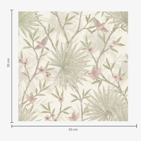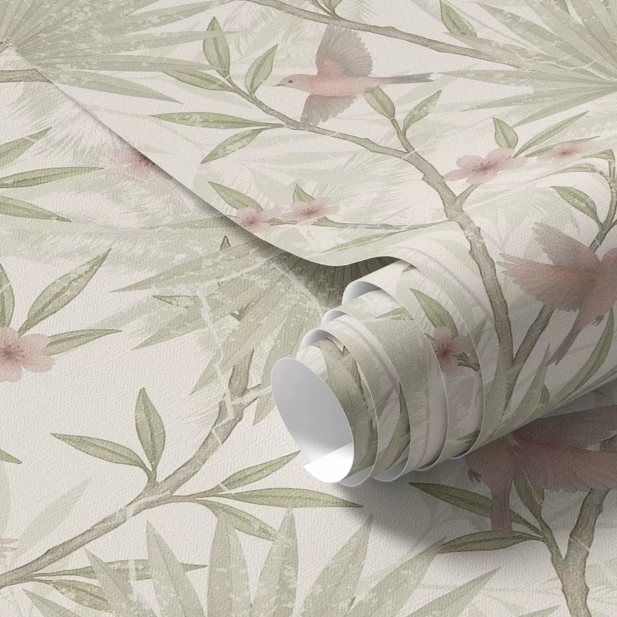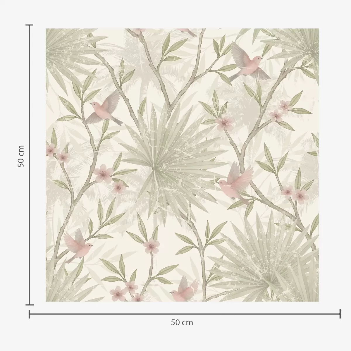 Tapet Delikate rosa fugler blant palmeblader Nr. a00883