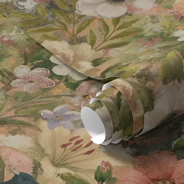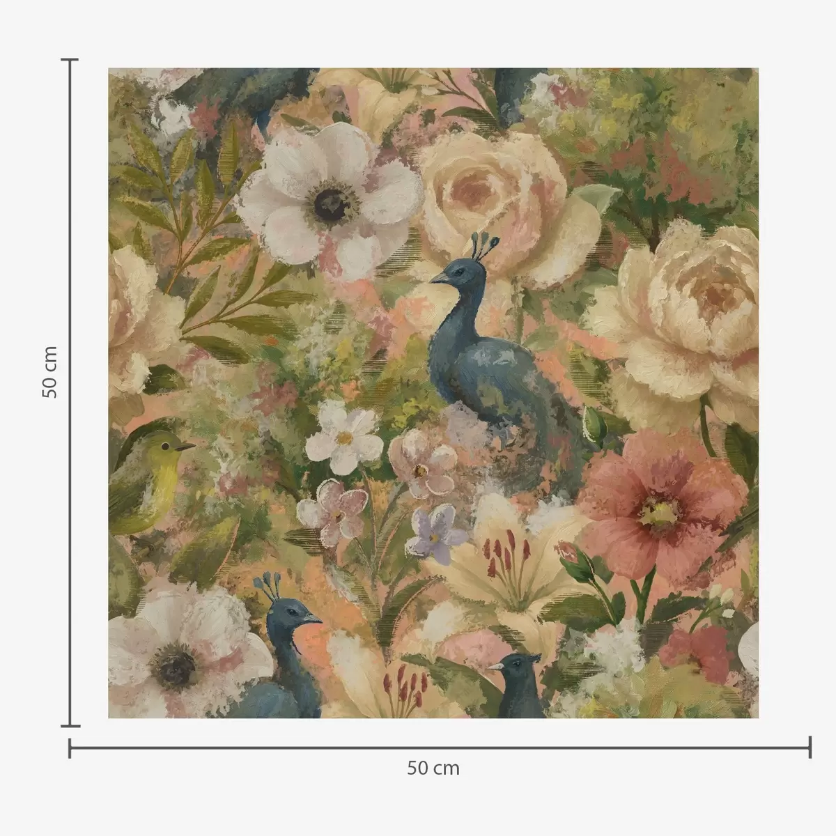 Tapet Malerisk hage med påfugler og store blomster Nr. a00885
