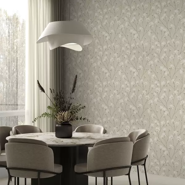 Tapet Lyse magnoliaer på slanke beige grener Nr. a00890
