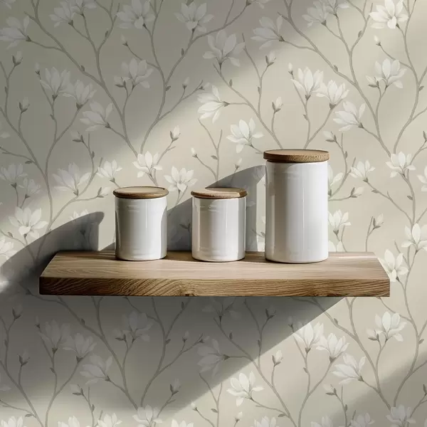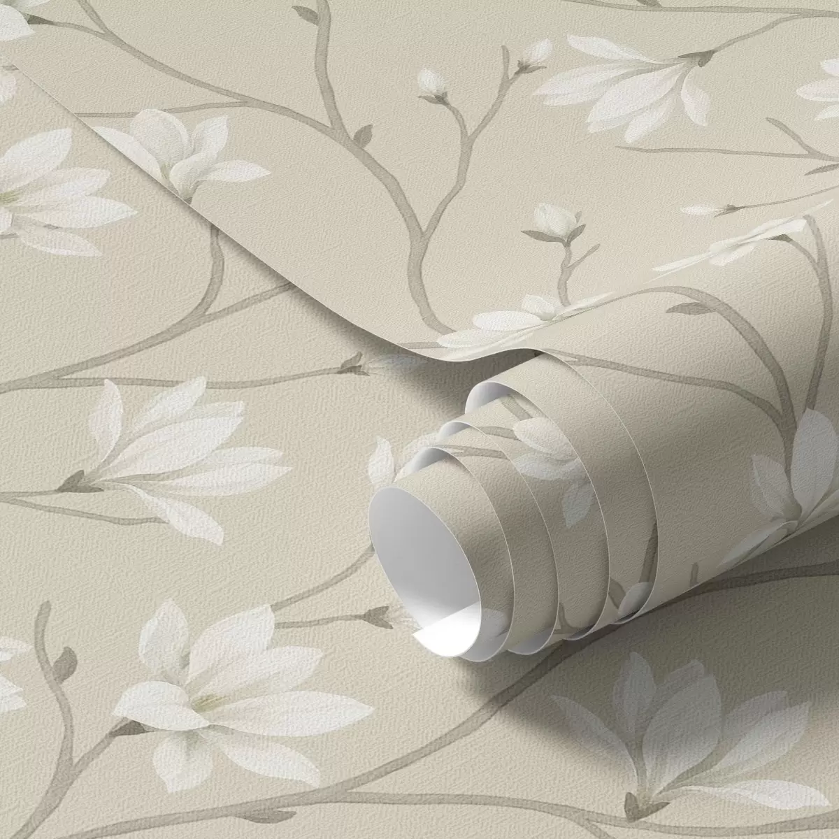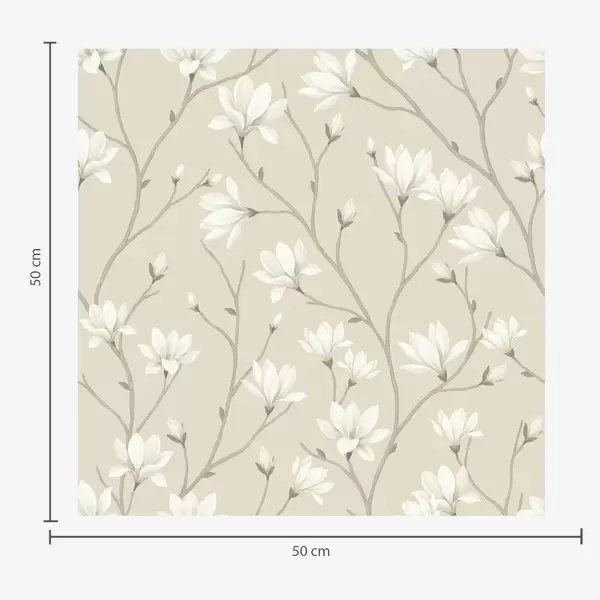 Tapet Lyse magnoliaer på slanke beige grener Nr. a00890