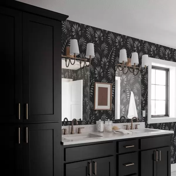 Tapet Svarte og hvite palmeblader på mørk bakgrunn Nr. a00891