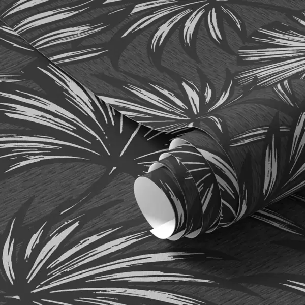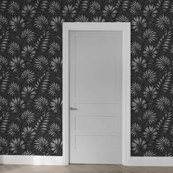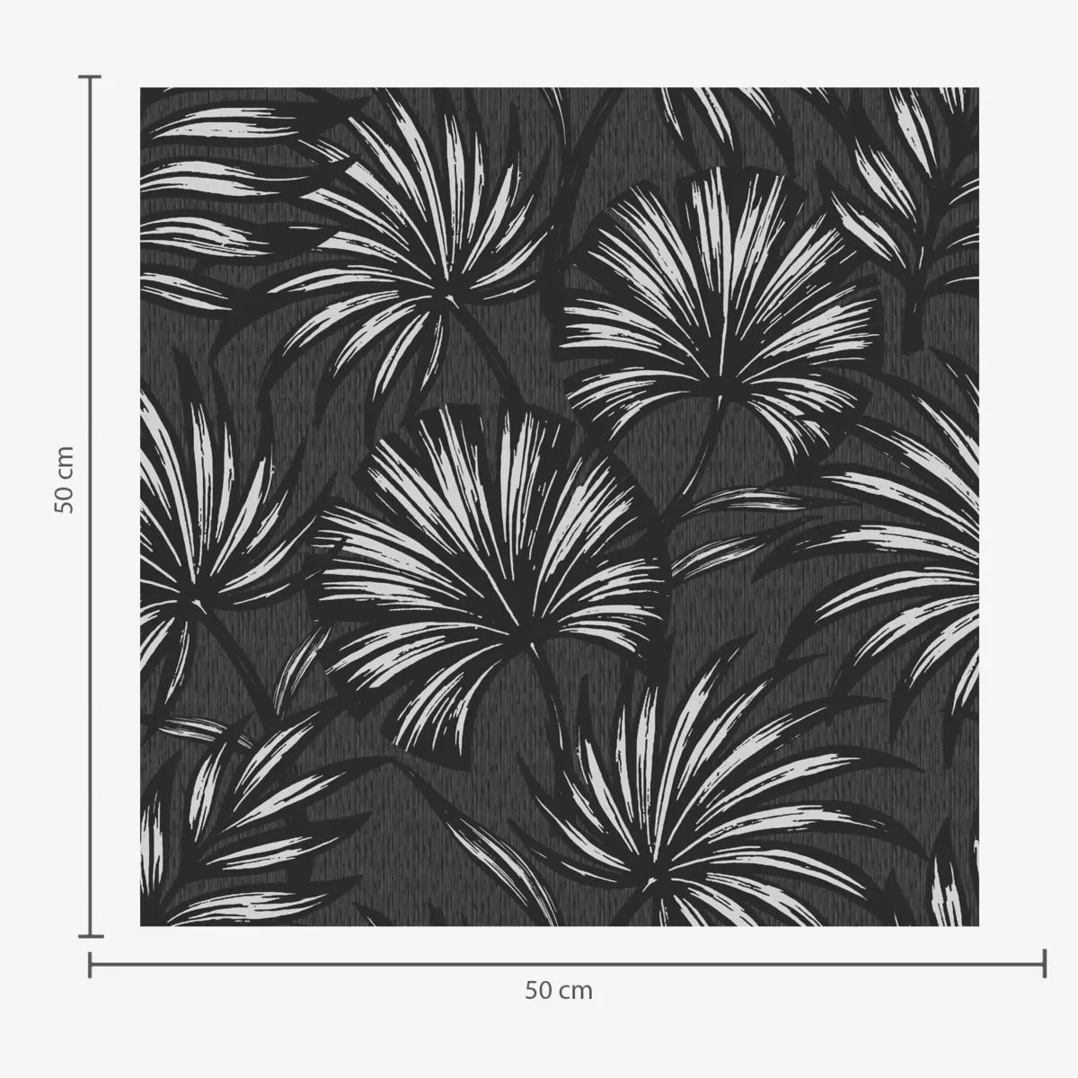 Tapet Svarte og hvite palmeblader på mørk bakgrunn Nr. a00891