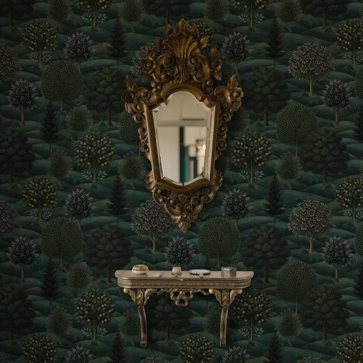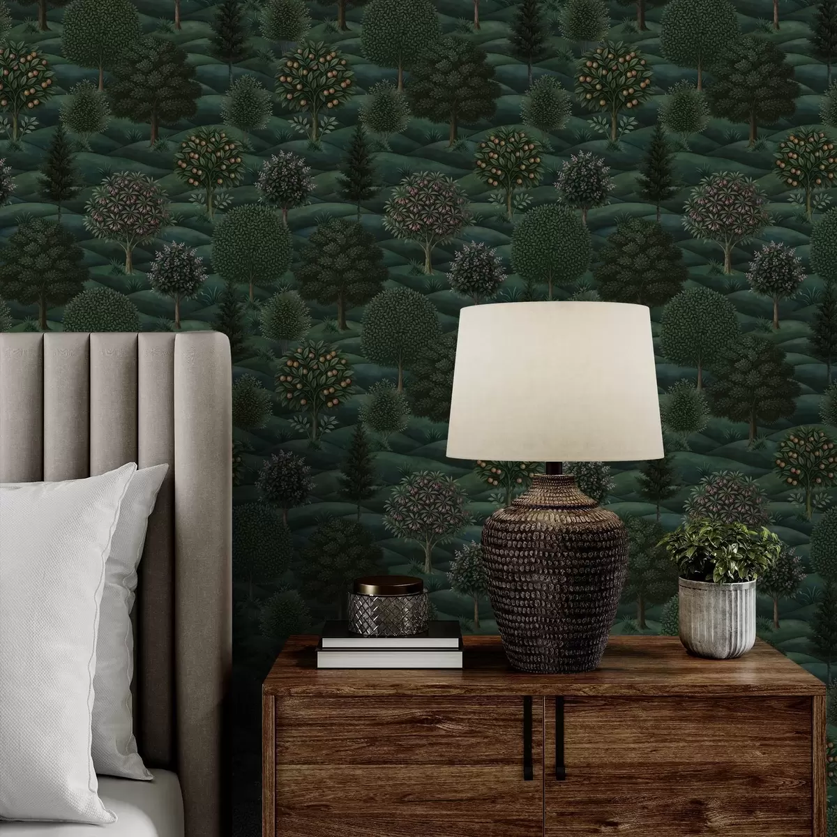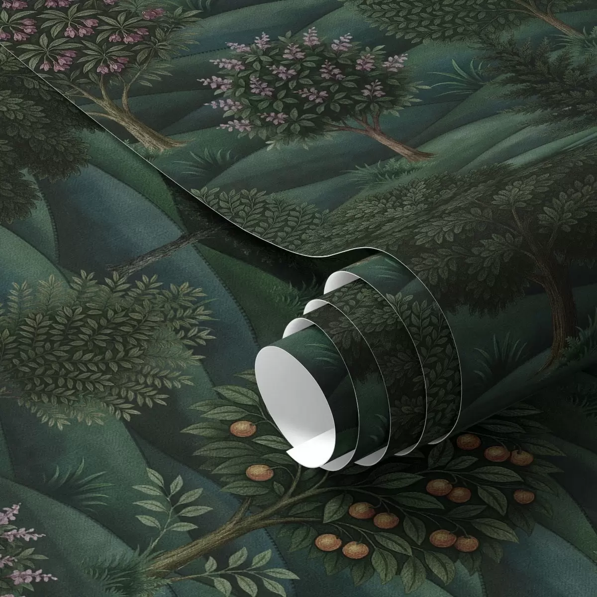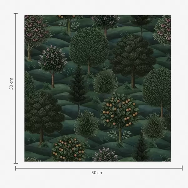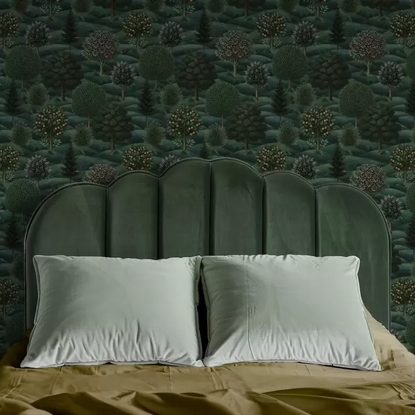 Tapet Frodig, grønt og bølgende landskap med mønstrede trær Nr. a00892