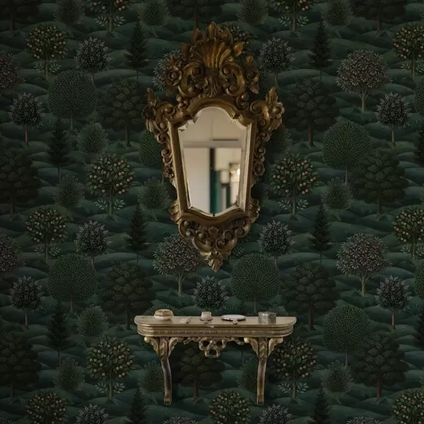 Tapet Frodig, grønt og bølgende landskap med mønstrede trær Nr. a00892