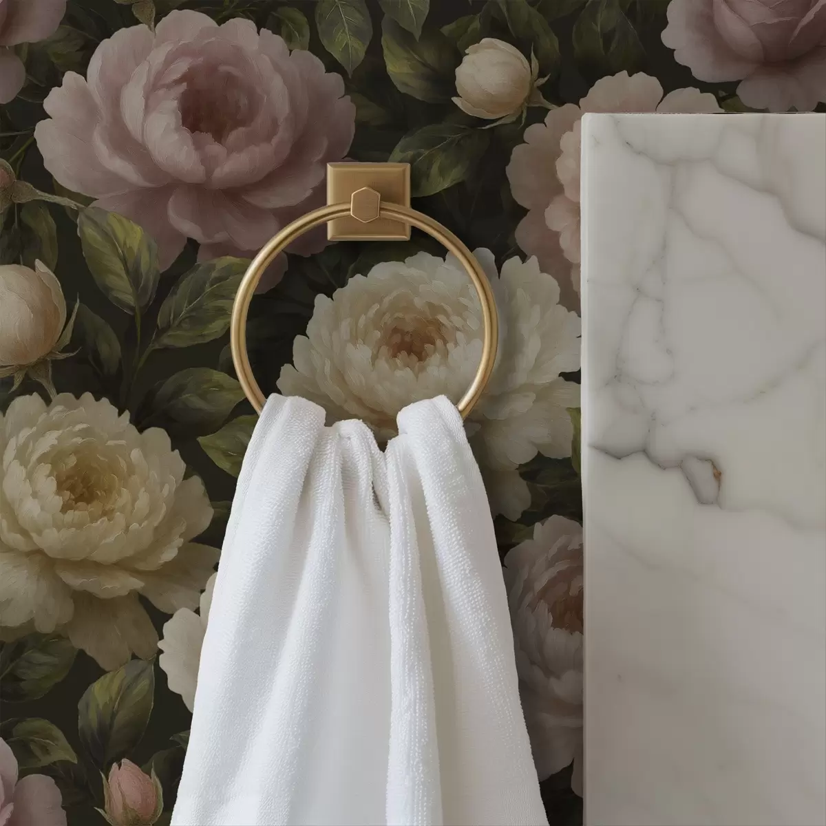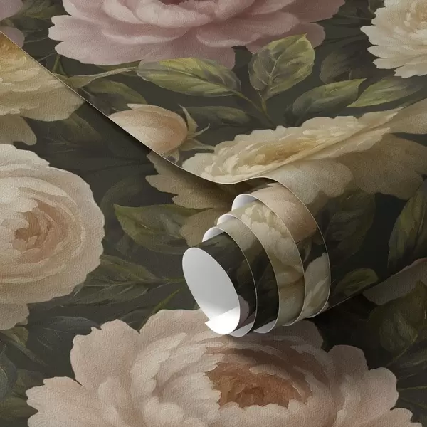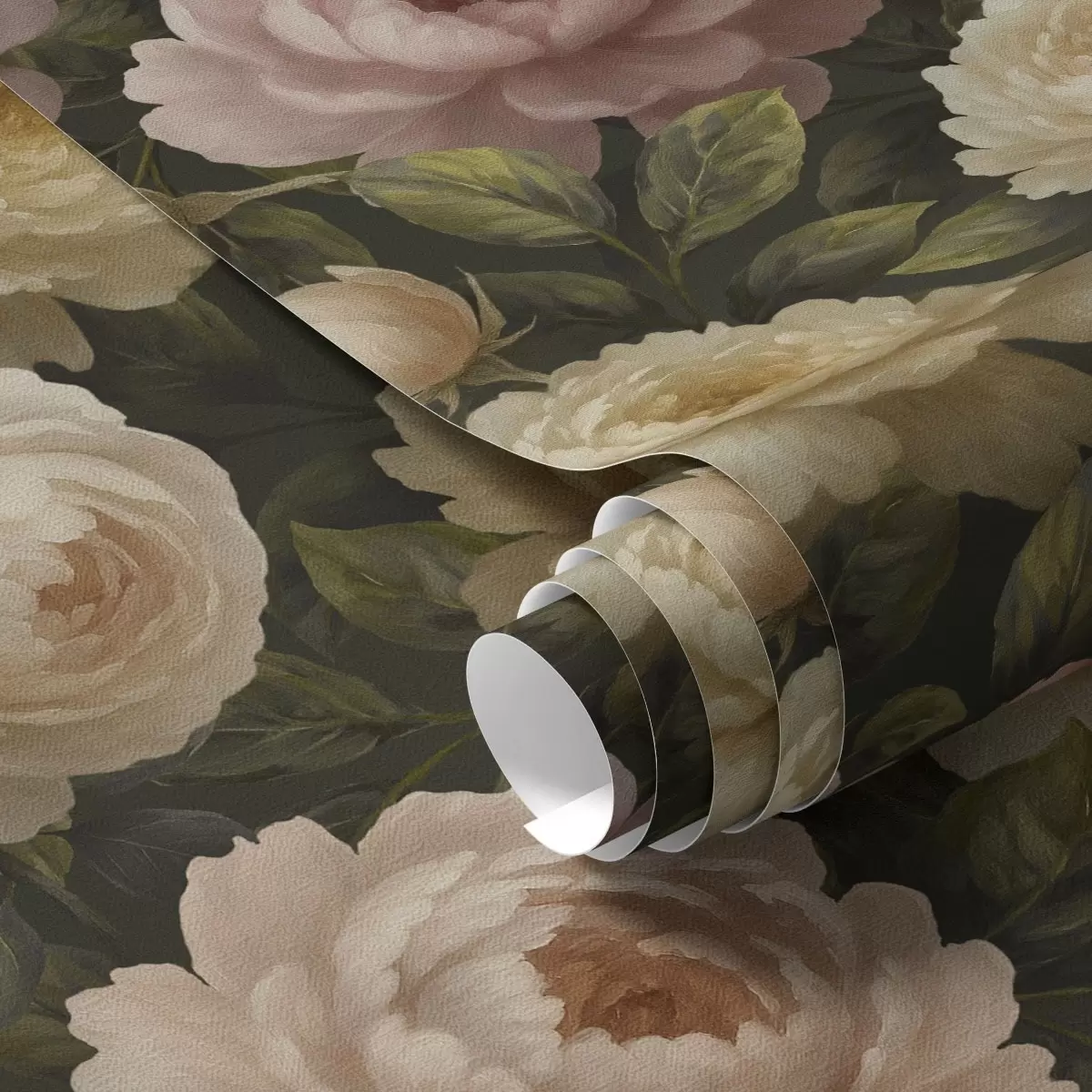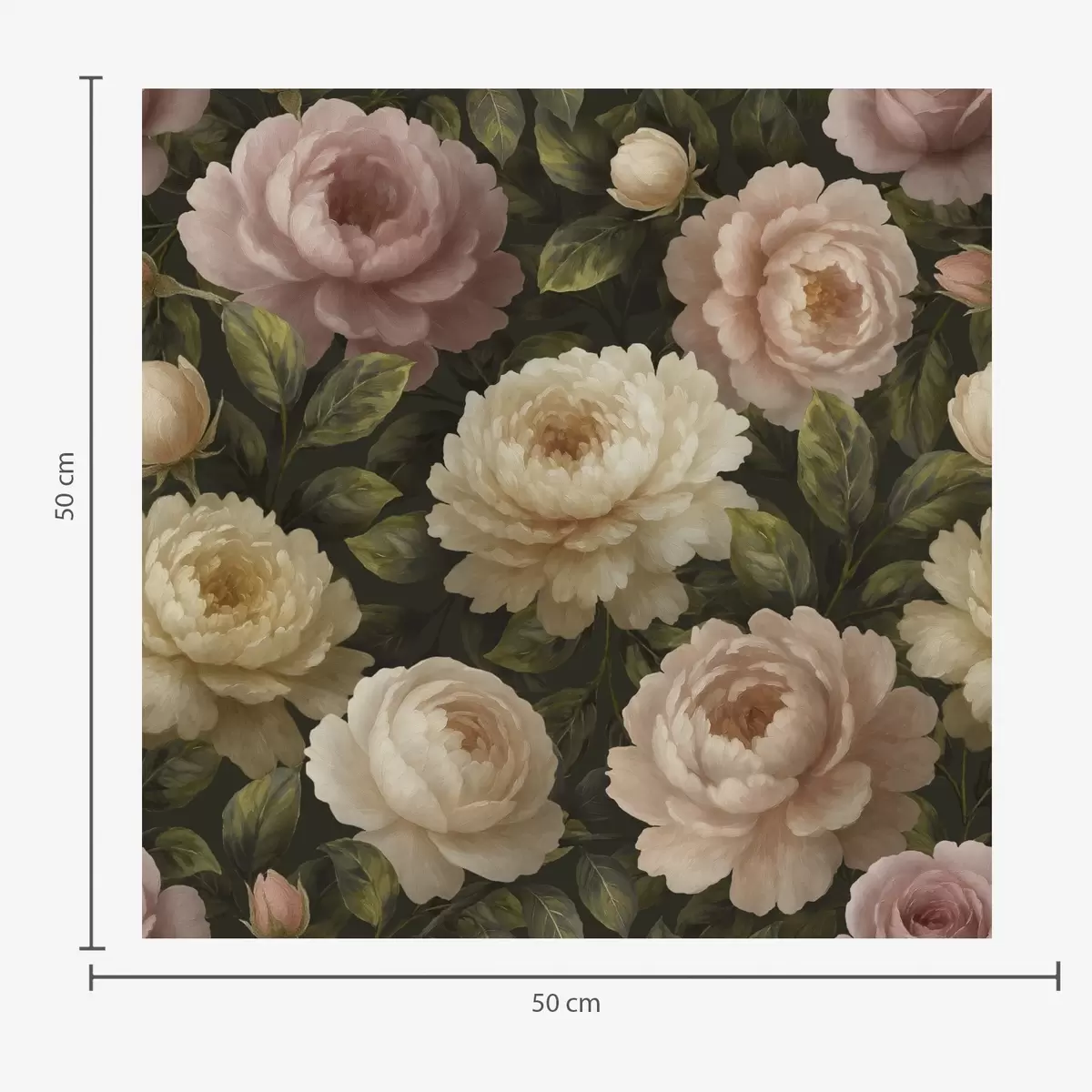Tapet Romantiske pioner på en mørk botanisk bakgrunn Nr. a00893