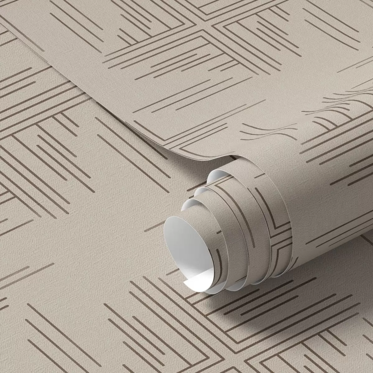 Tapet Kakao-linjearbeidsrutenett med små sentrale kryss, beige Nr. a00911