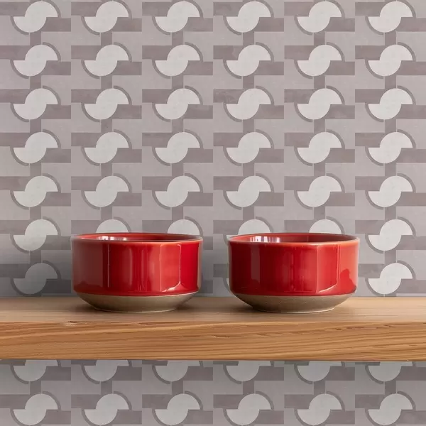 Tapet Mauve modulære fliser med sammenkoblede halvsirkler Nr. a00915