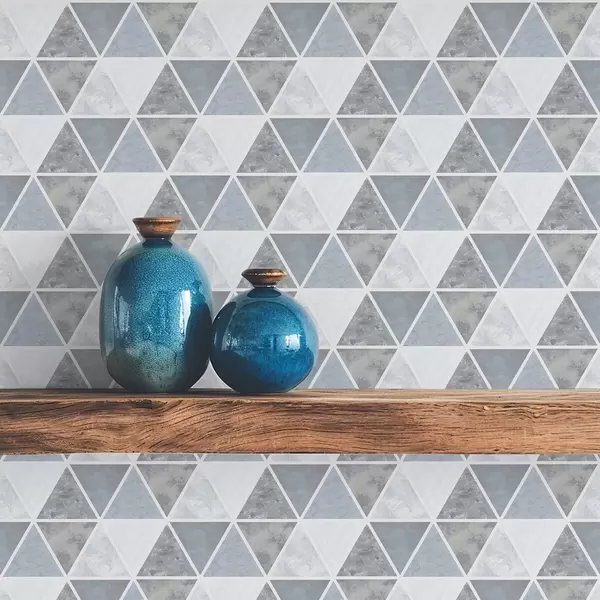 Tapet Trekantgeometri i kule blågrå toner Nr. a00917v1