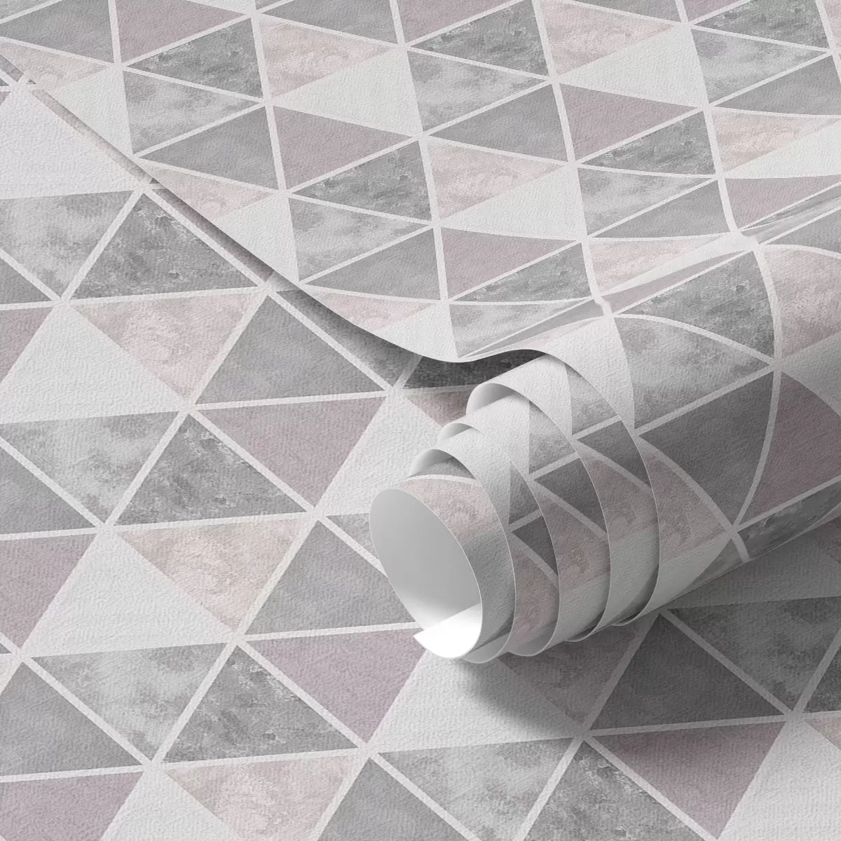 Tapet Geometrisk trekantmønster i grå og pulveraktige toner Nr. a00920