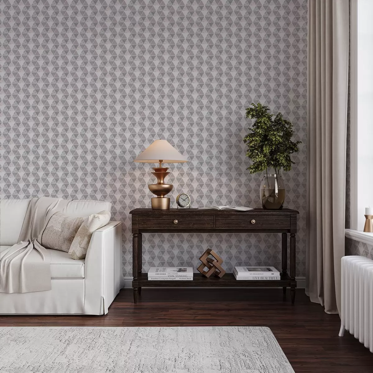 Tapet Geometrisk trekantmønster i grå og pulveraktige toner Nr. a00920