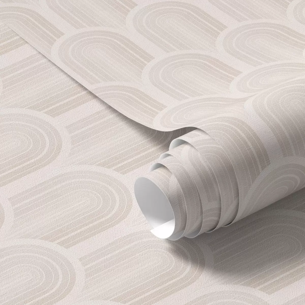 Tapet Rad med bueformer i myke beige striper, retro-stemning Nr. a00923