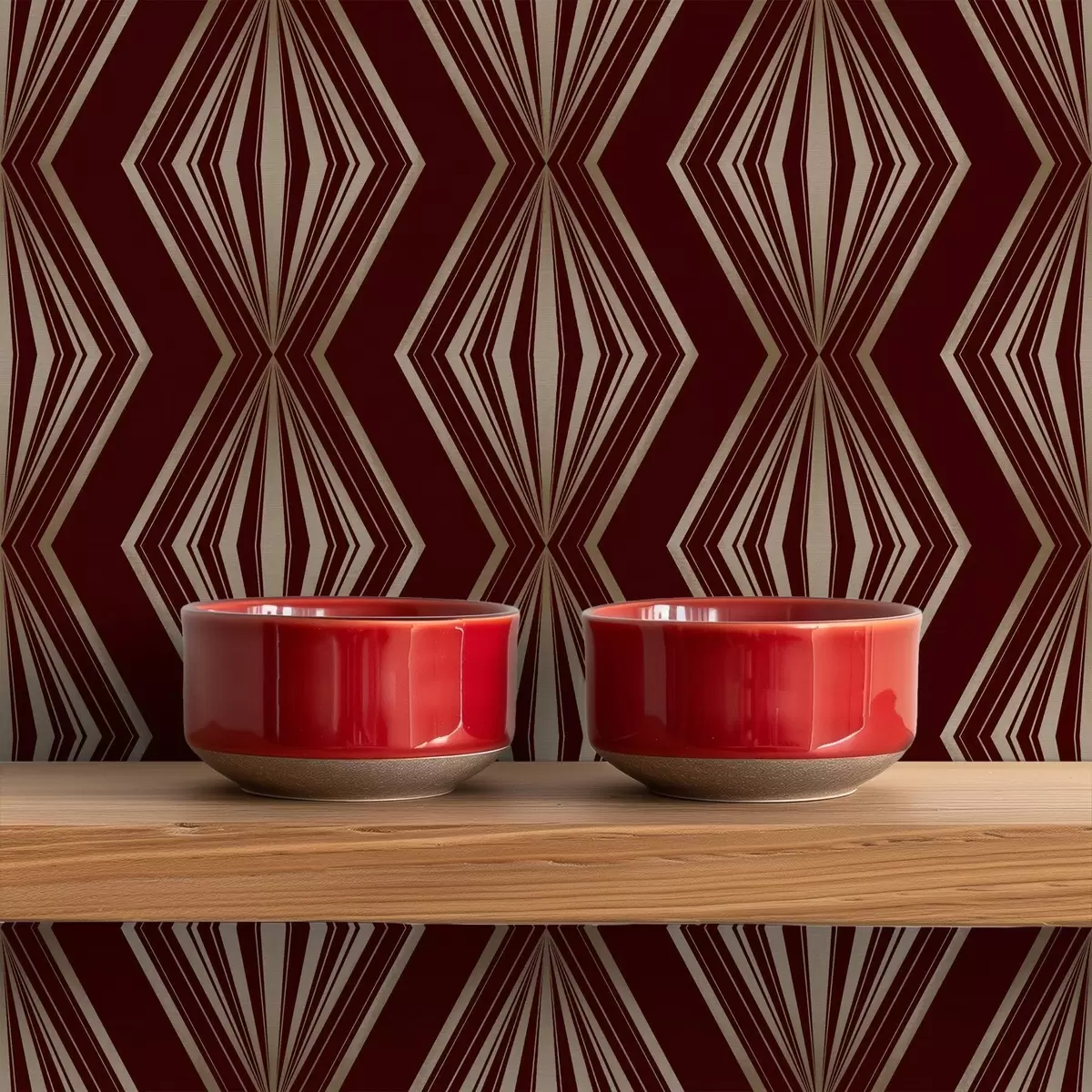 Tapet Diamantgeometrisk mønster på vinbrun bakgrunn Nr. a00925v1