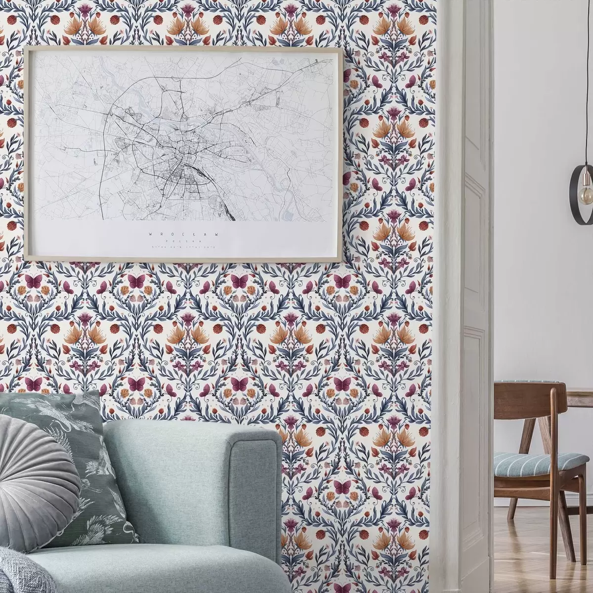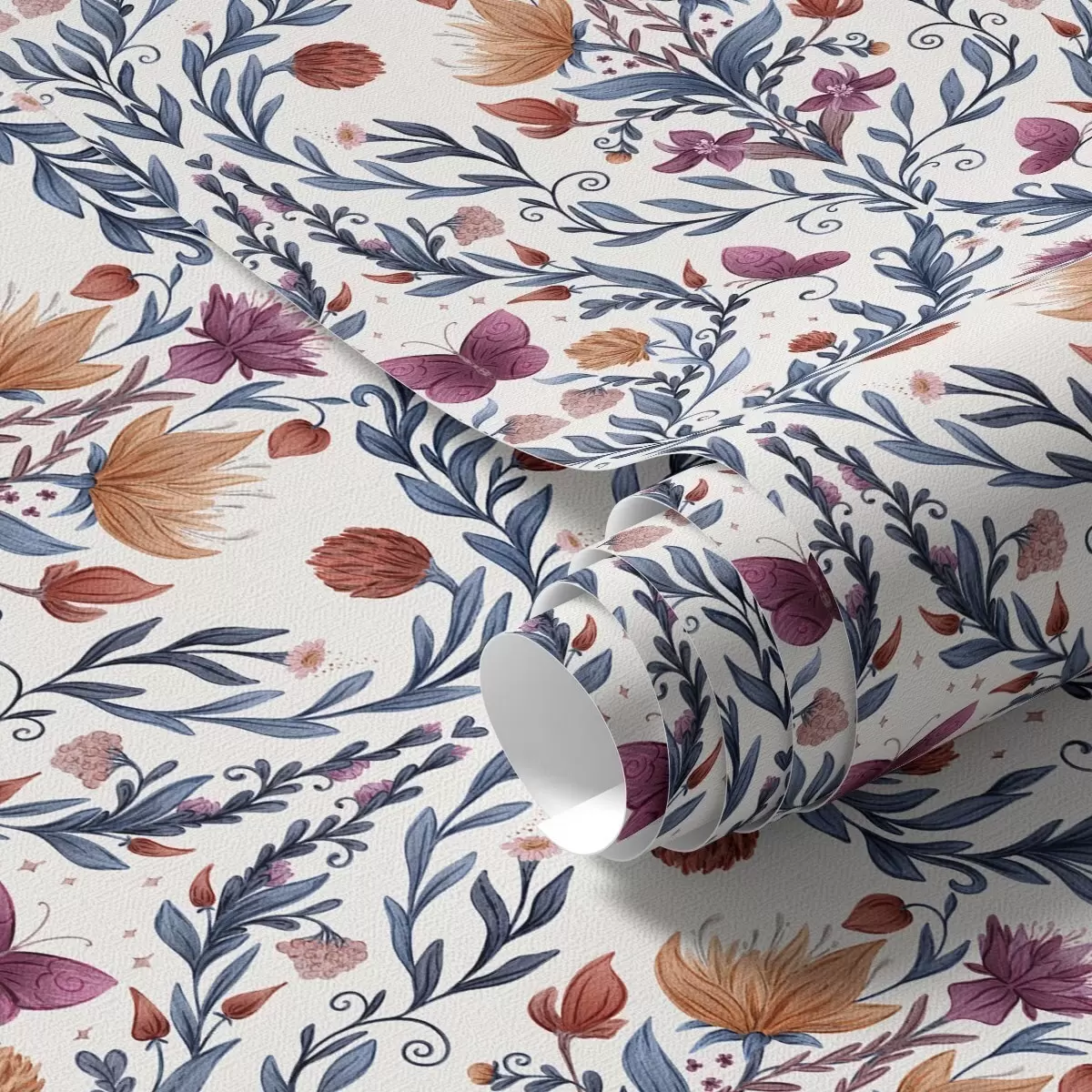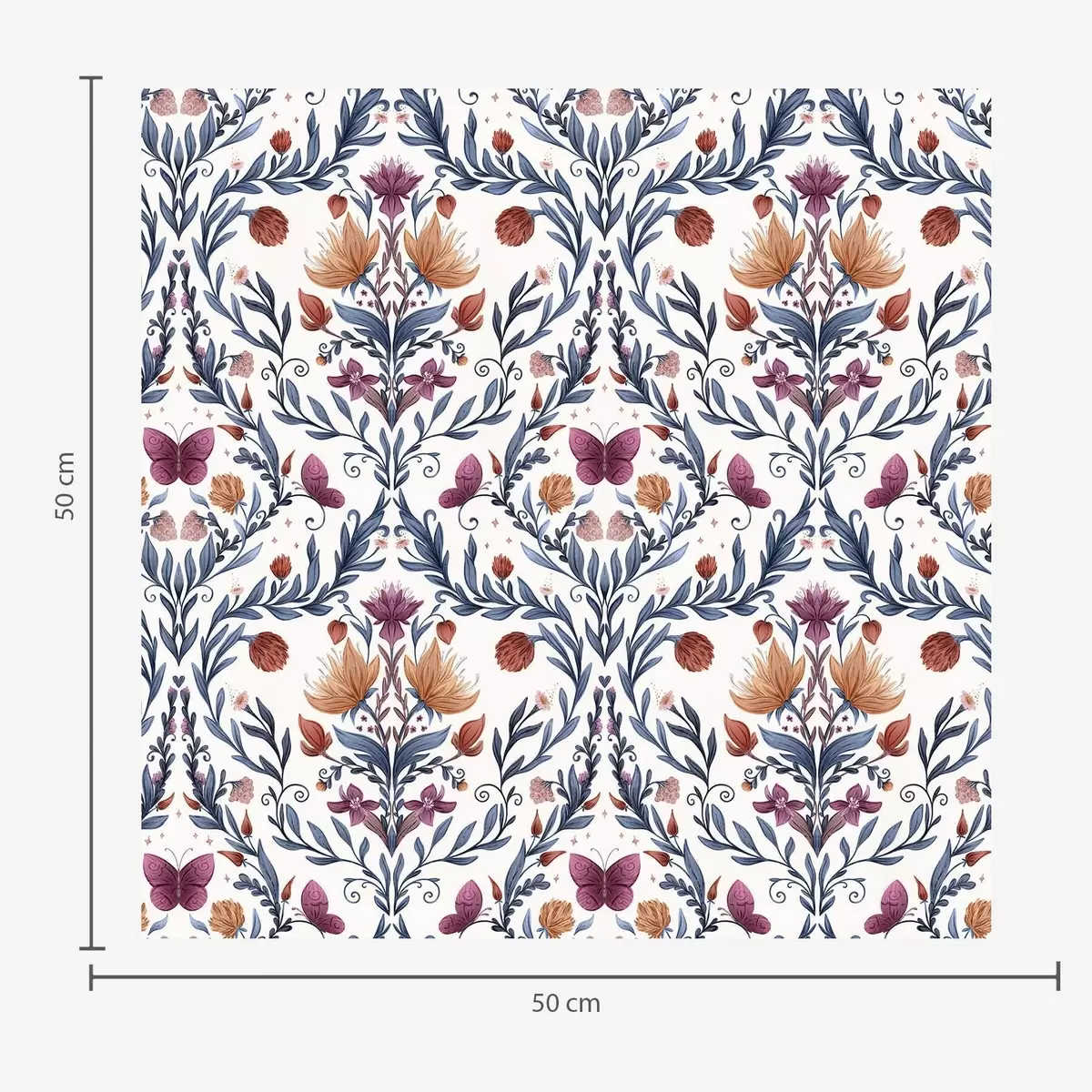 Tapet Blomstermønster med sommerfugler på varm kremfarge Nr. a00926v2