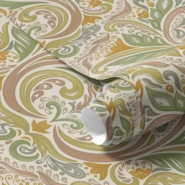 Tapet Dekorative bladformede virvler i grønne og terrakottafarger Nr. a00927v1