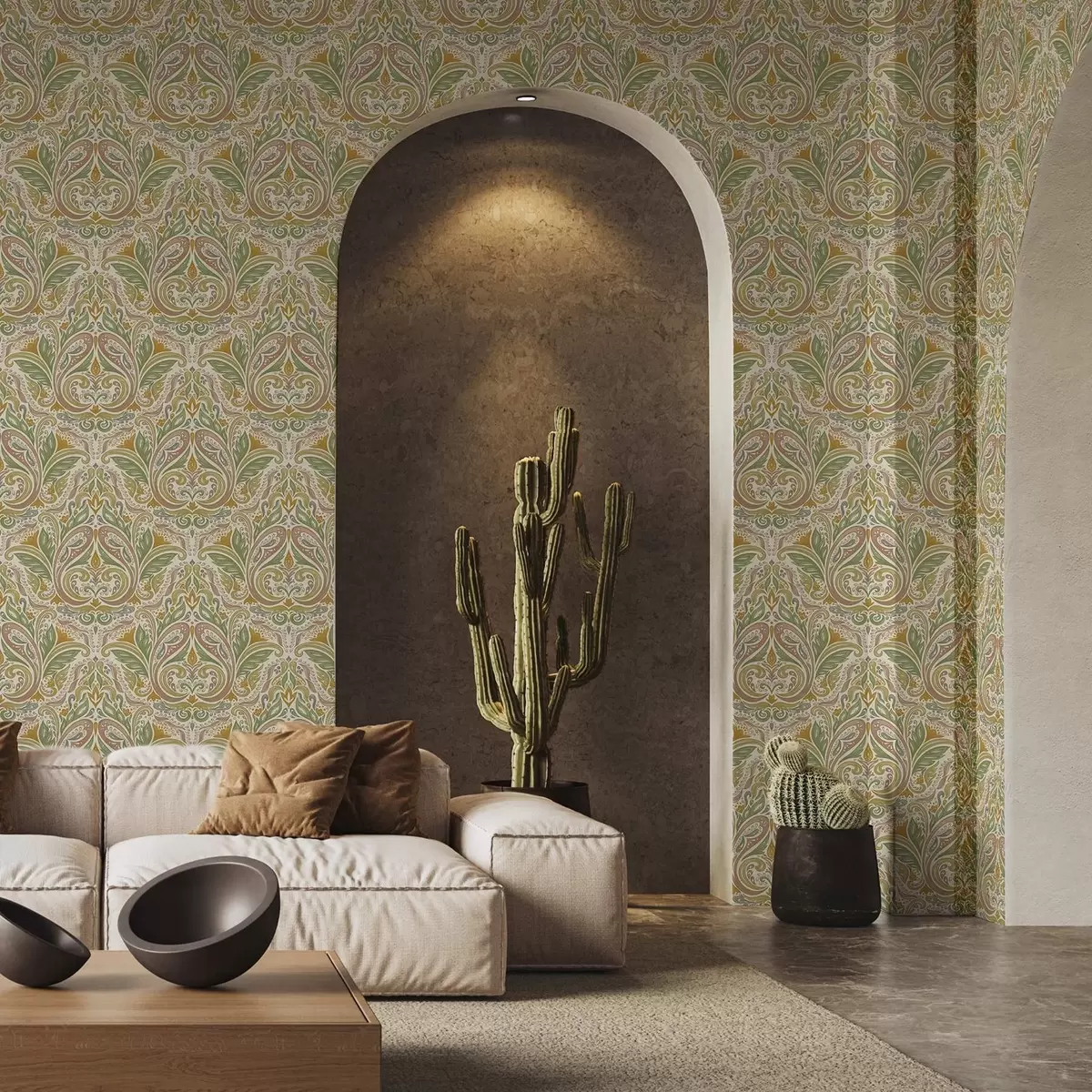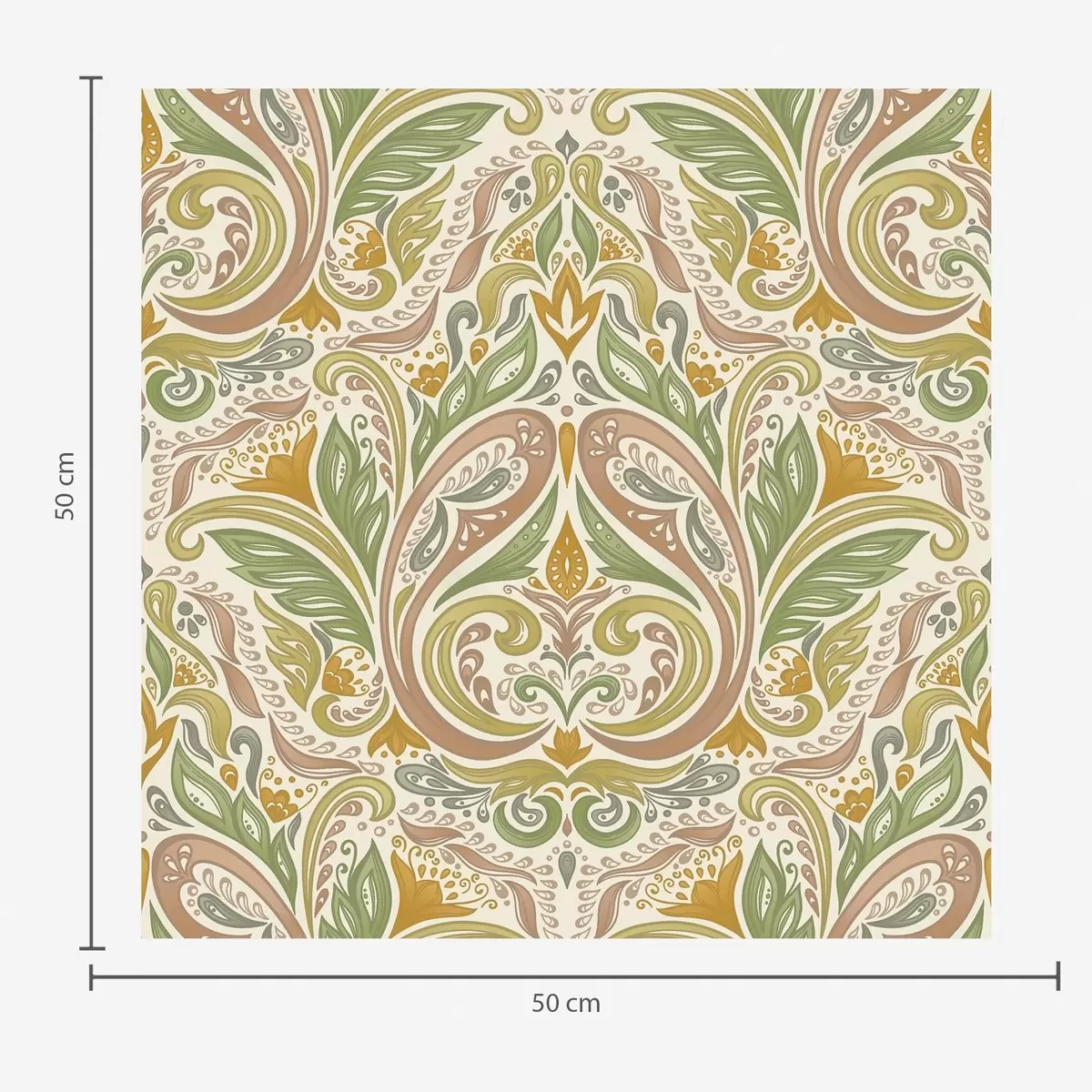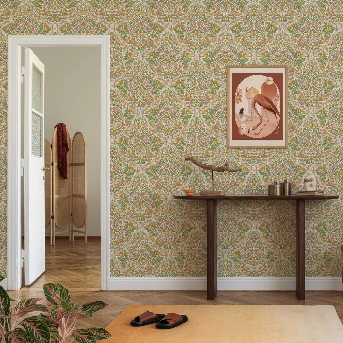 Tapet Dekorative bladformede virvler i grønne og terrakottafarger Nr. a00927v1