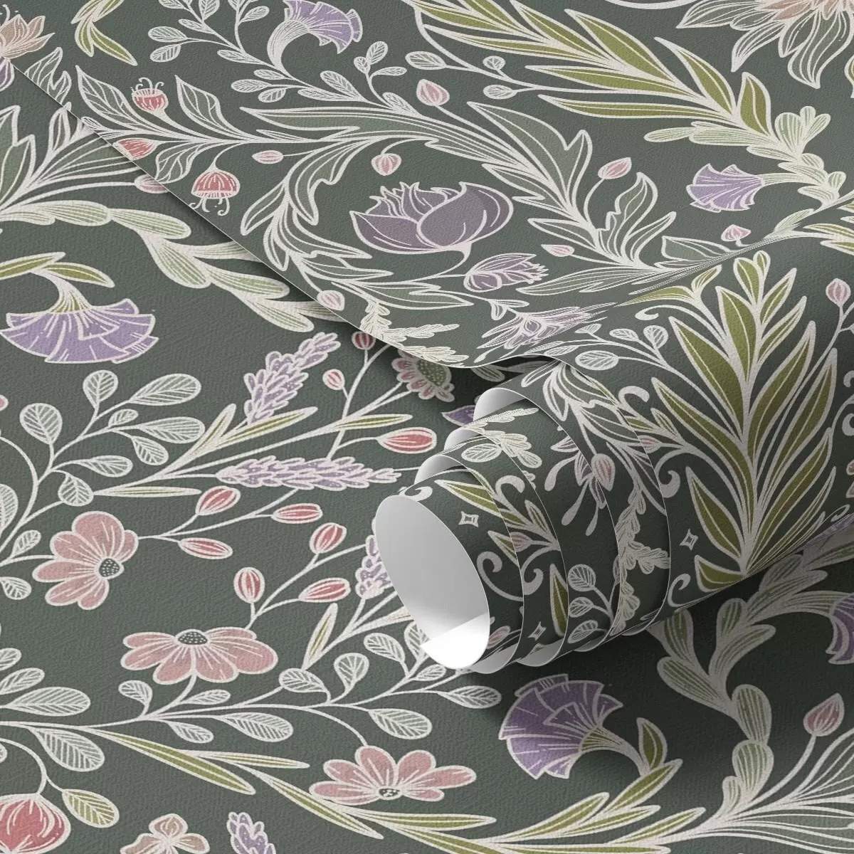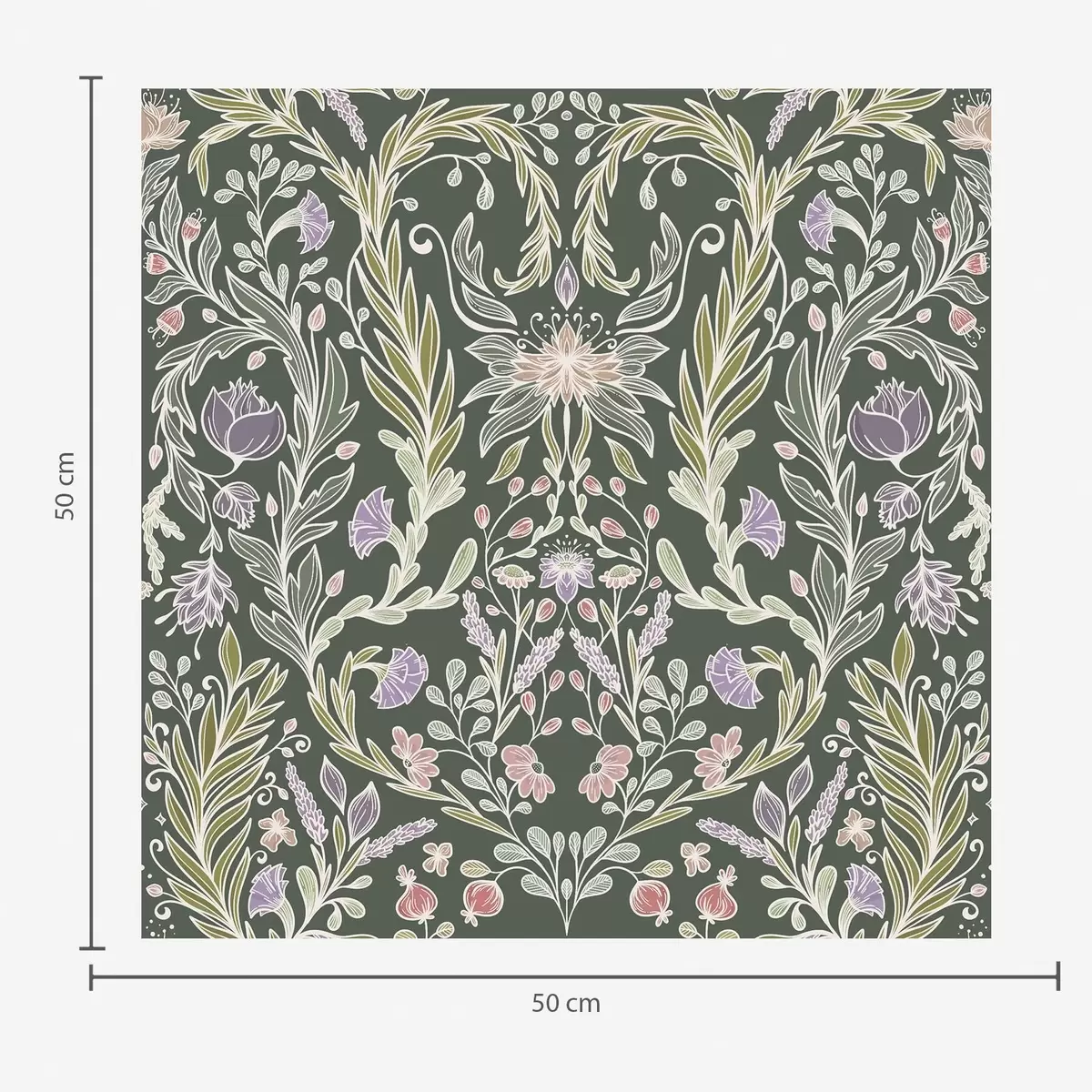 Tapet Symmetrisk blomsterornament på mørkegrønn bakgrunn Nr. a00928
