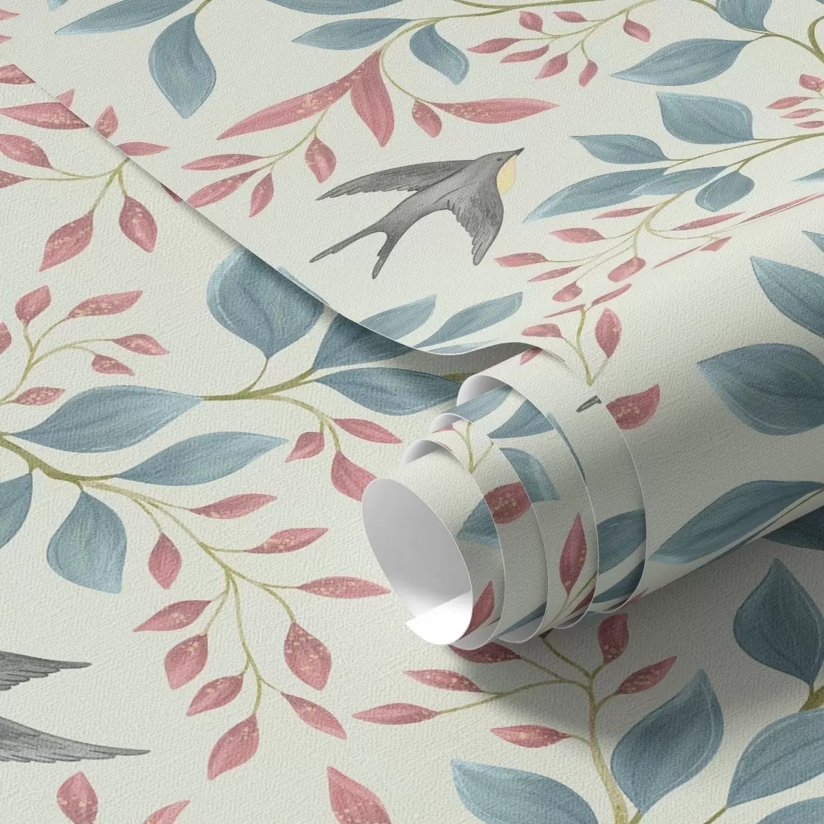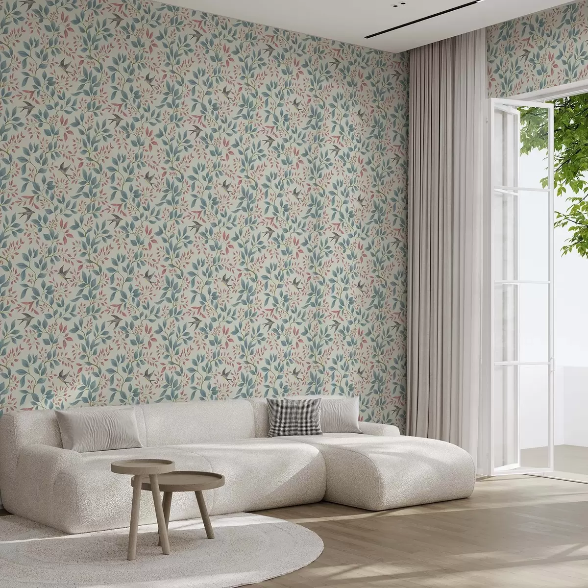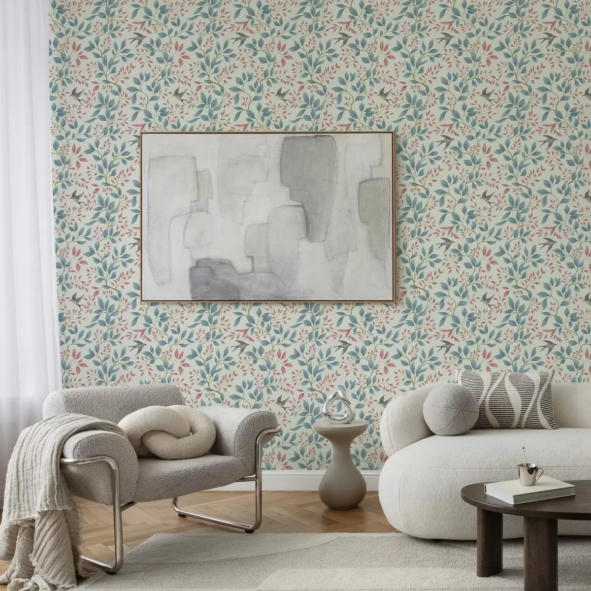 Tapet Luftige grener og fugler på en lys mintgrønn bakgrunn Nr. a00933v1
