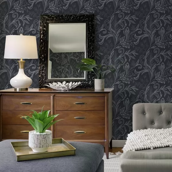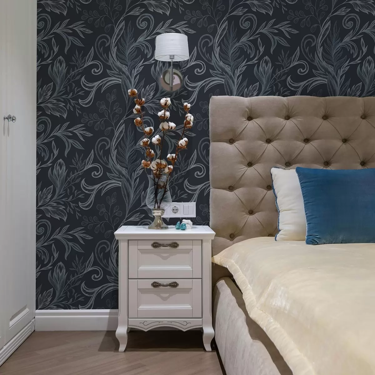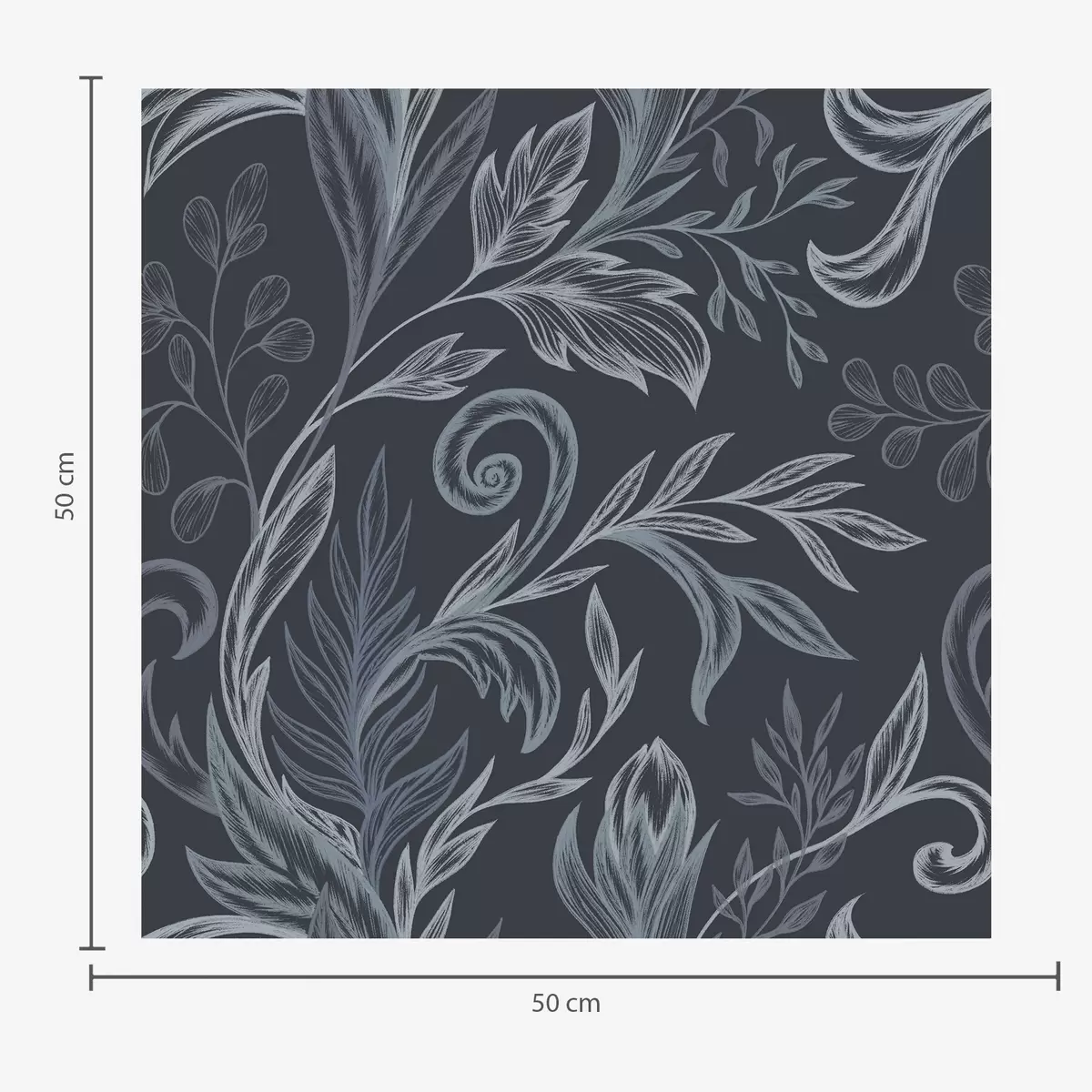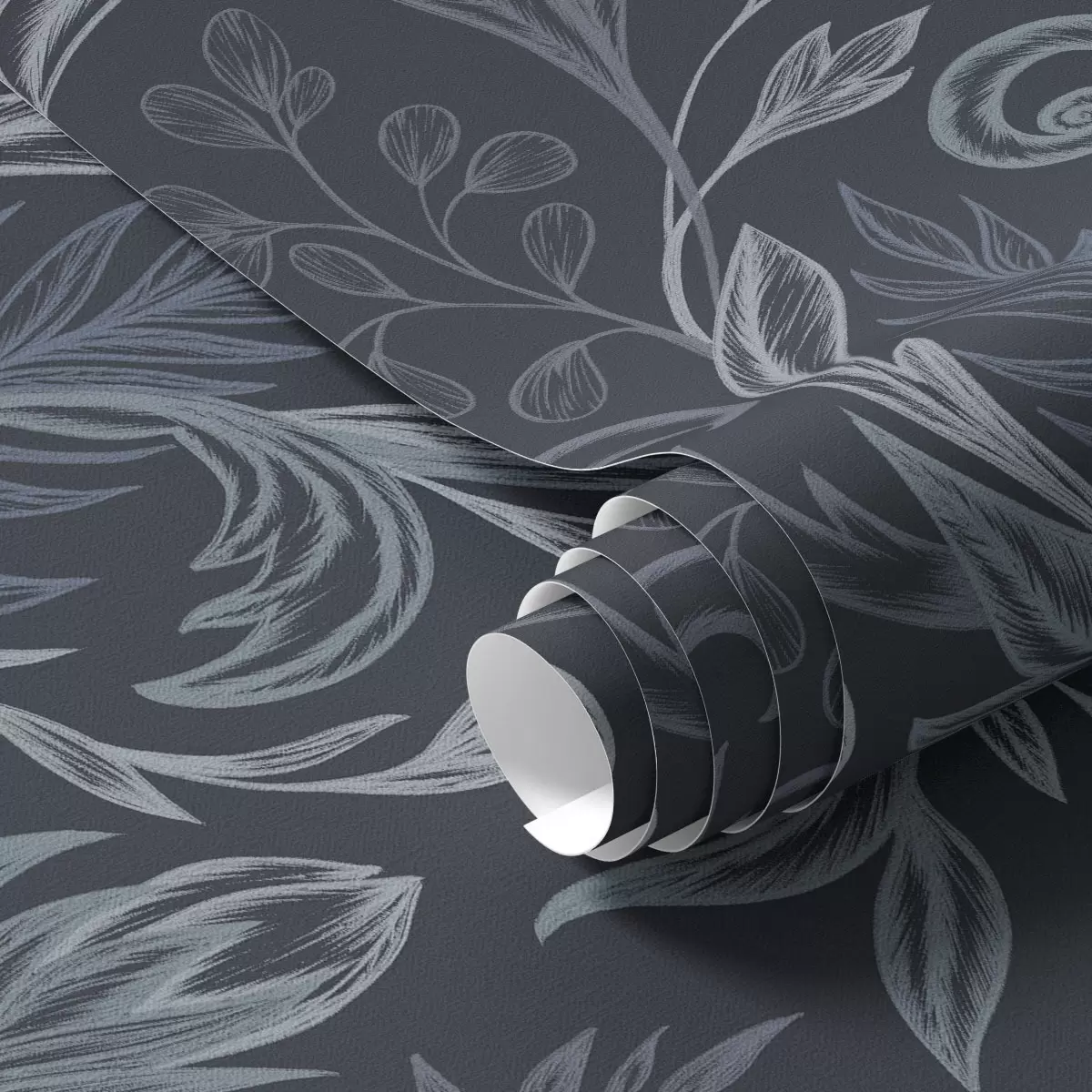 Tapet Mørke indigo krøllete blader med håndtegnet skyggelegging Nr. a00935