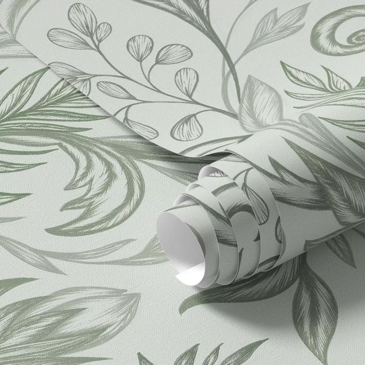 Tapet Myke mynteblader med delikate grågrønne linjer Nr. a00935v3