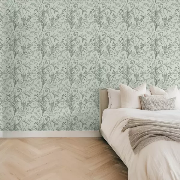 Tapet Myke mynteblader med delikate grågrønne linjer Nr. a00935v3