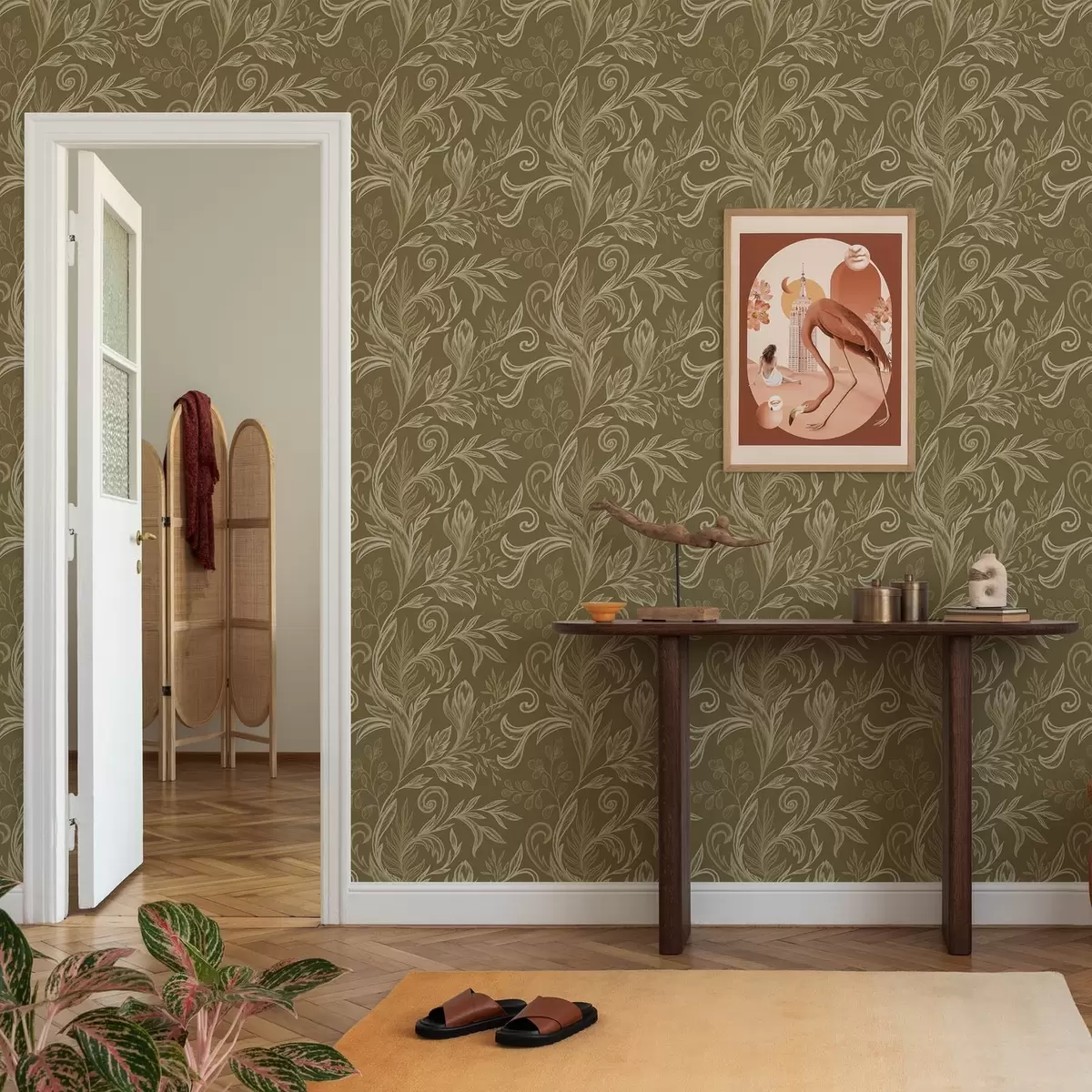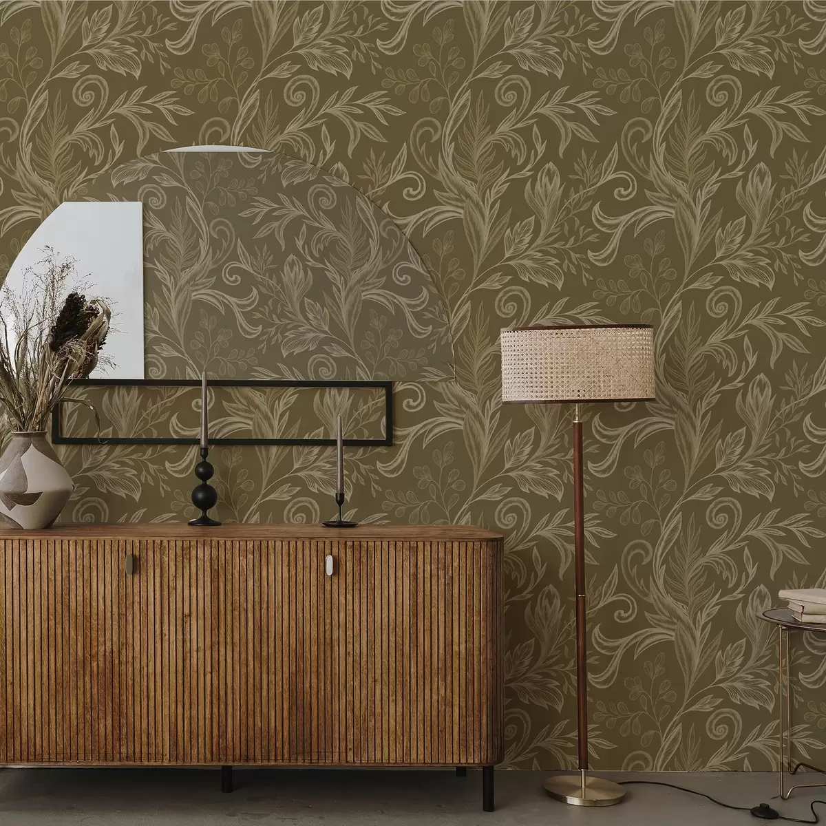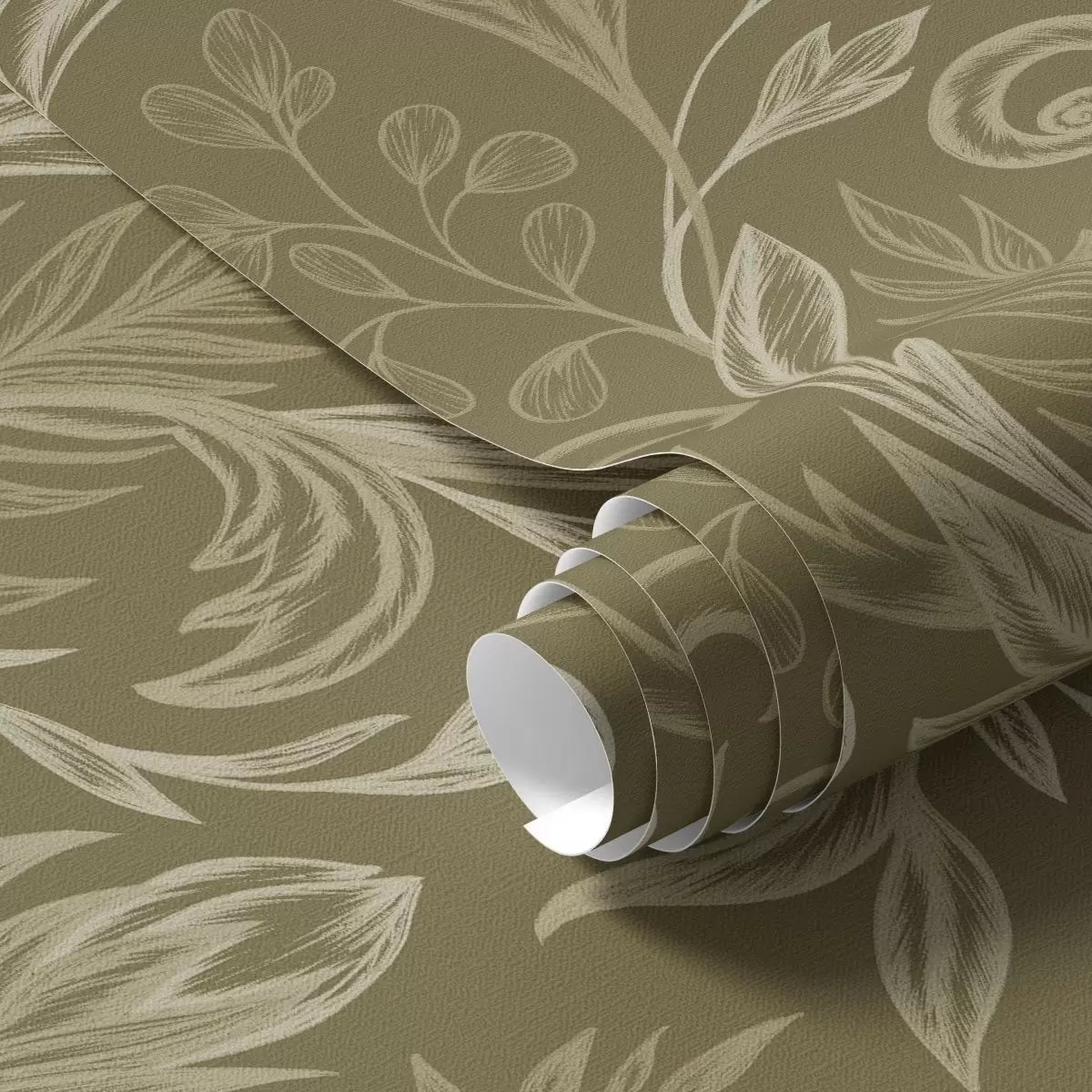 Tapet Varme khakifargede krøllete blader med lyse kremfargede detaljer Nr. a00935v4