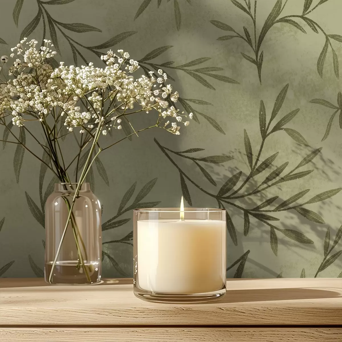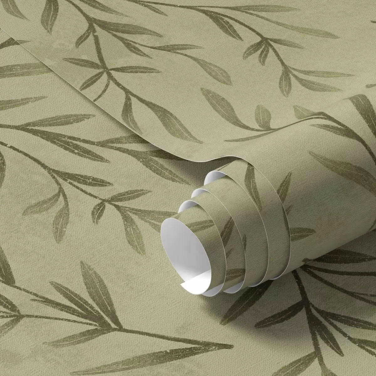 Tapet Olivenkvister på en dempet gulgrønn strukturert bakgrunn Nr. a00936