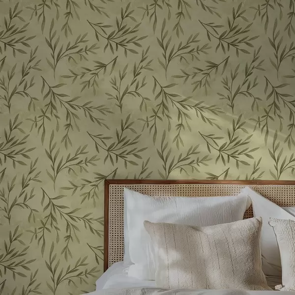 Tapet Olivenkvister på en dempet gulgrønn strukturert bakgrunn Nr. a00936