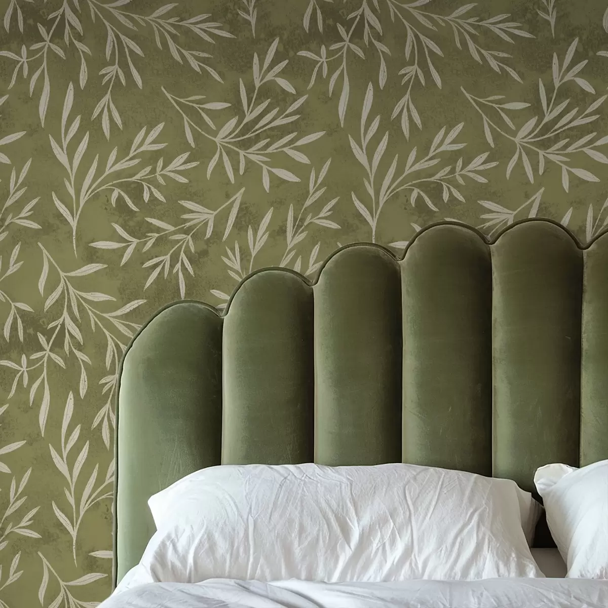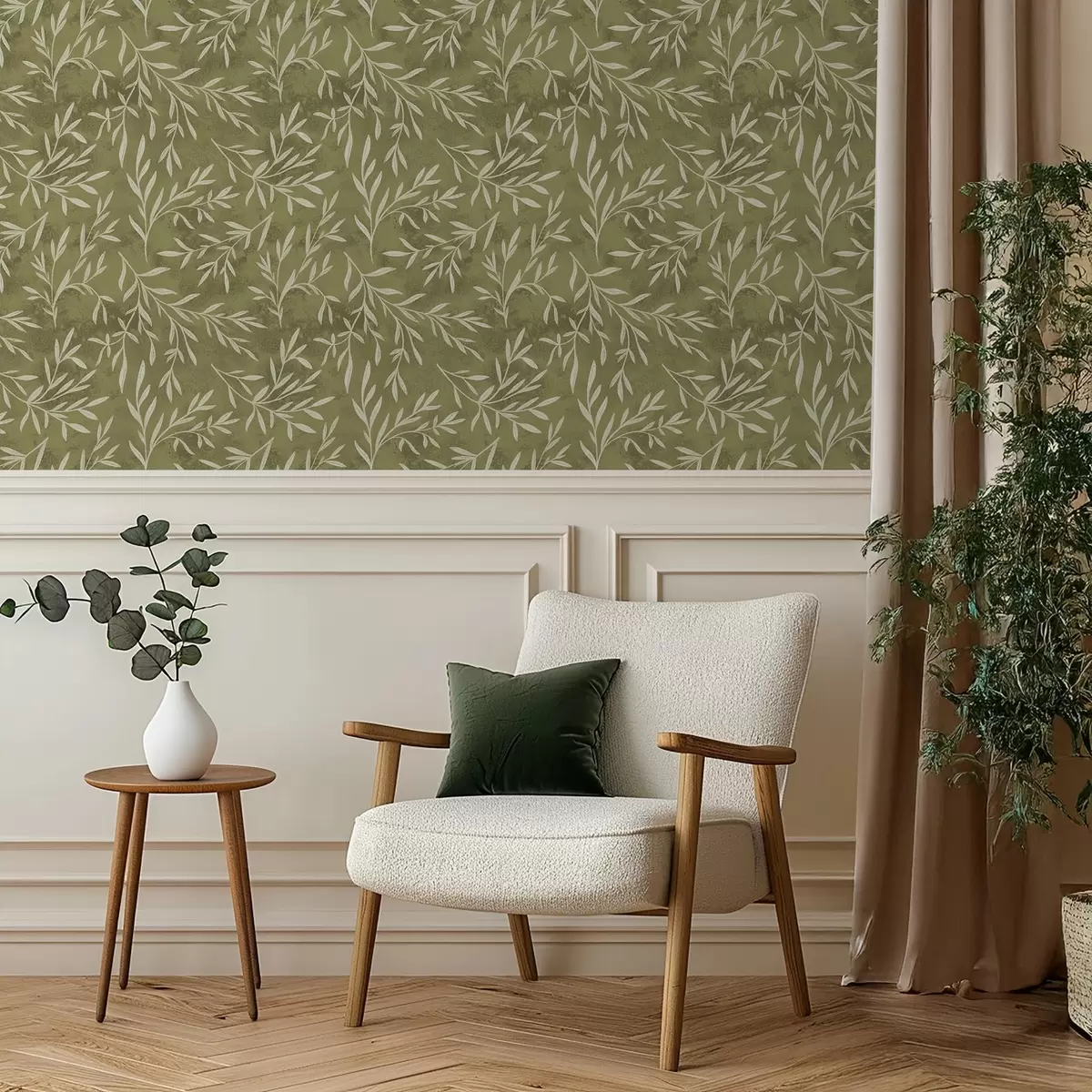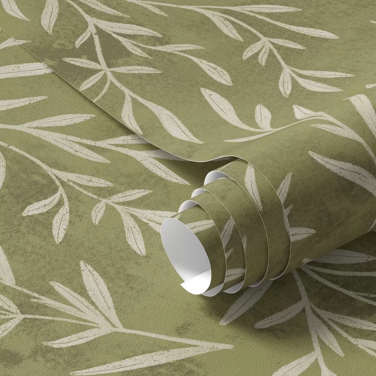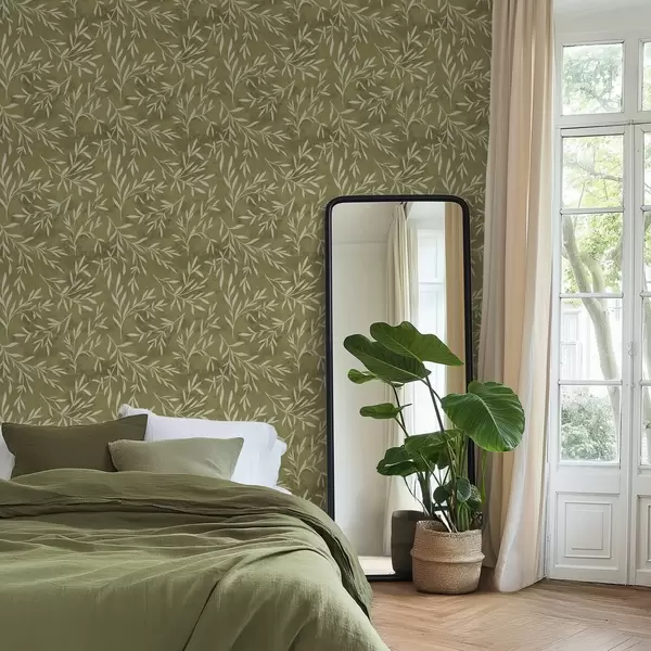 Tapet Kremhvite kvister på en varm olivenfarget bakgrunn Nr. a00936v1