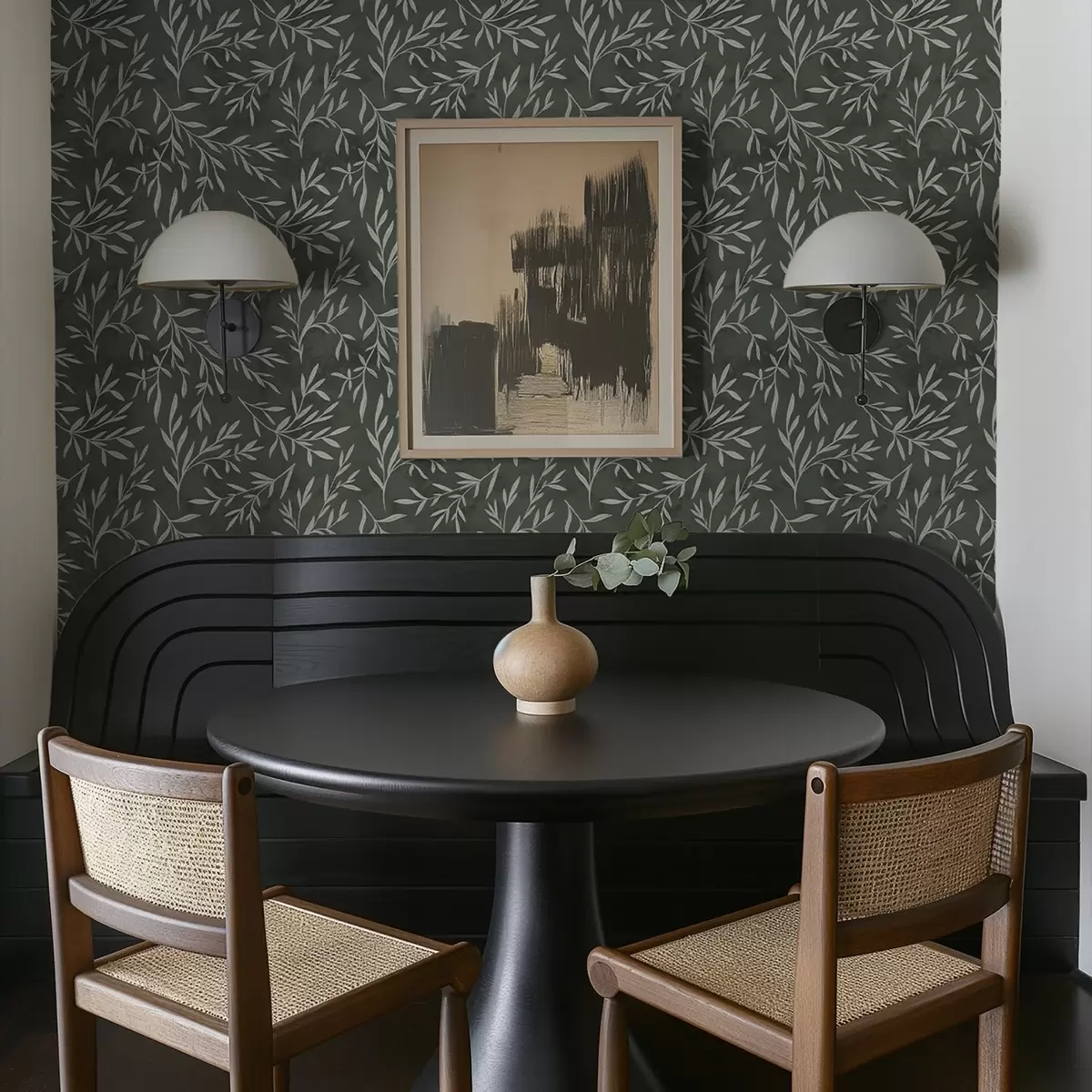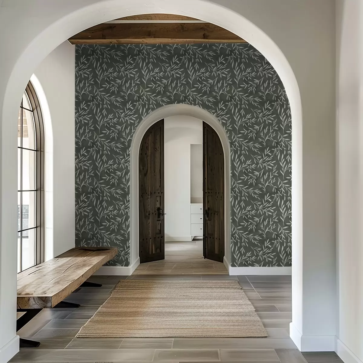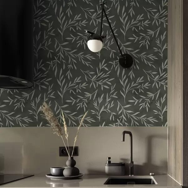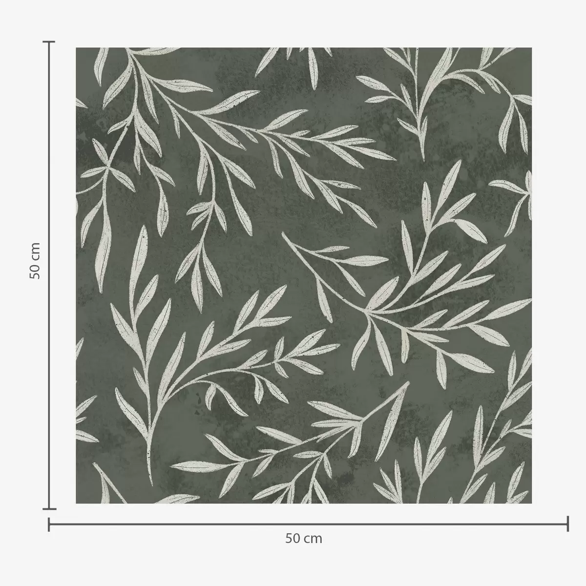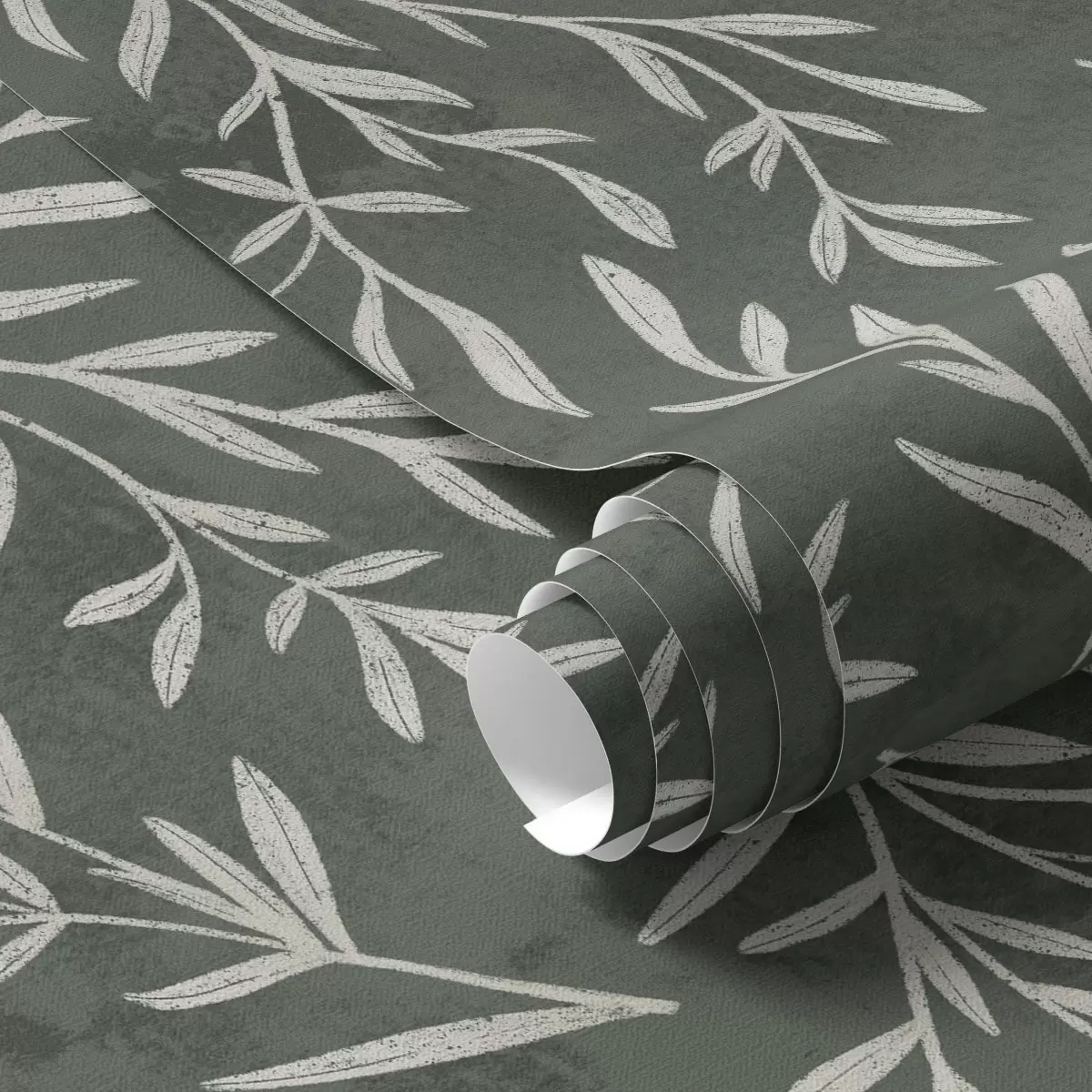 Tapet Skisserte hvite grener på en dyp salviegrønn bakgrunn Nr. a00936v2
