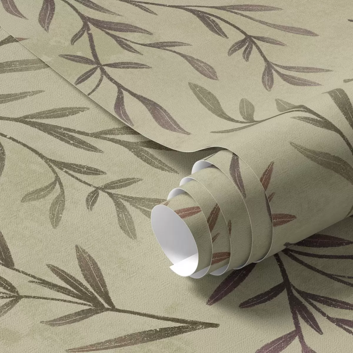 Tapet Lilla og grønne grener med blader på en varm bakgrunn Nr. a00936v4