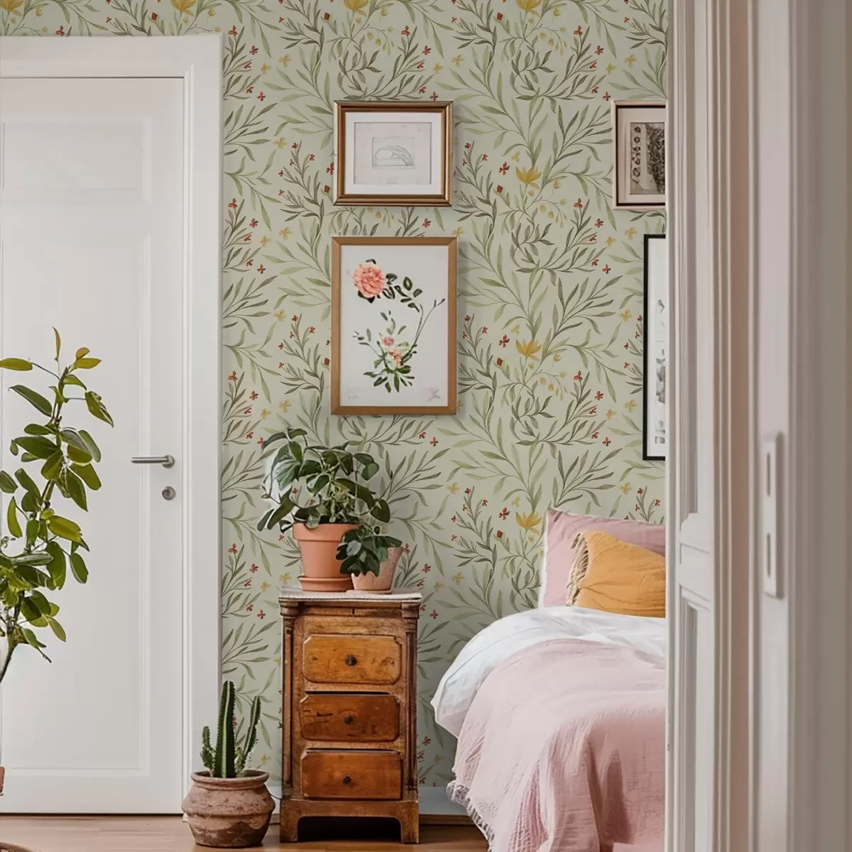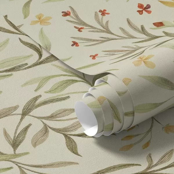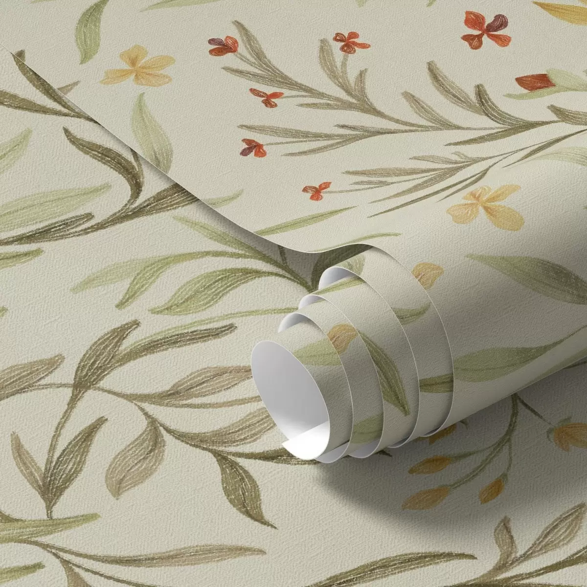 Tapet Gule og røde blomster på en lys grønnaktig bakgrunn Nr. a00937