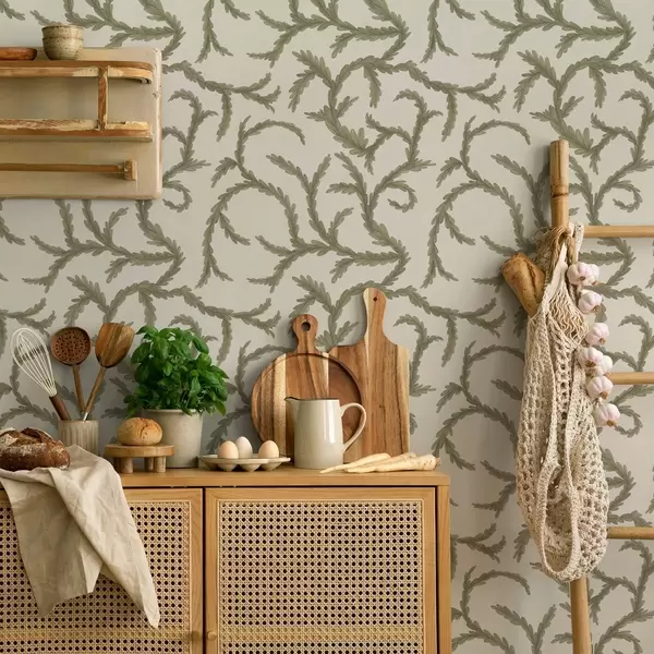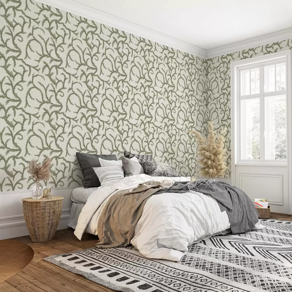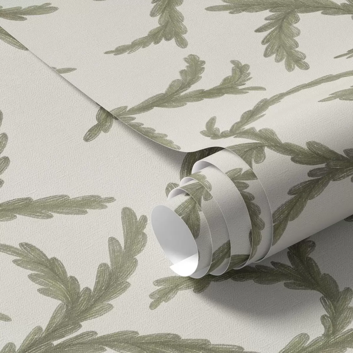 Tapet Myke grønne barrkrøller på lys bakgrunn Nr. a00938