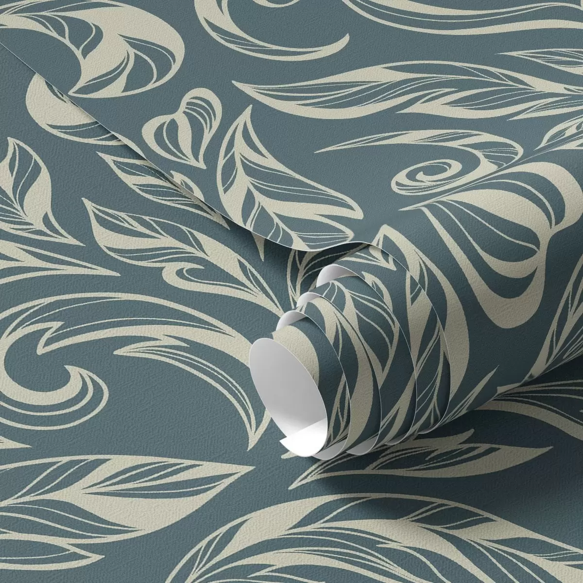 Tapet Bladmønster av lyse linjer på blågrå bakgrunn Nr. a00940