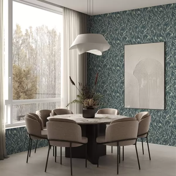 Tapet Bladmønster av lyse linjer på blågrå bakgrunn Nr. a00940