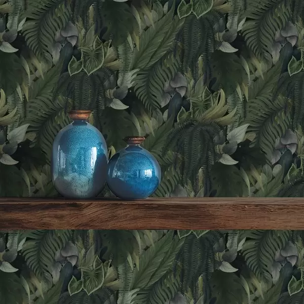 Tapet Tett tropisk løvverk i dype grønne kratt Nr. a00943