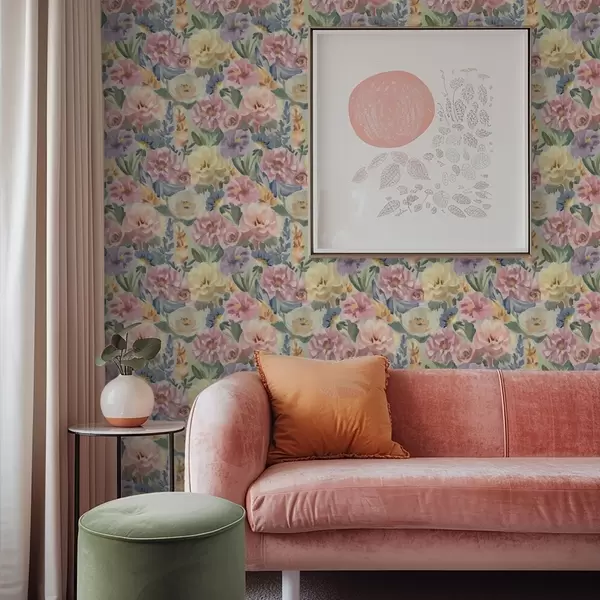 Tapet Pastellfargede, uskarpe penselblomster, myk fargepalett Nr. a00954