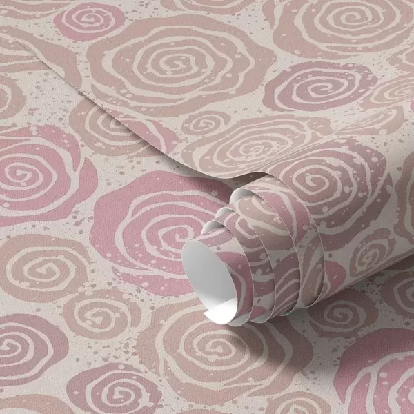 Tapet Spiralsvingte rosa roser og sprut på lys bakgrunn Nr. a00955