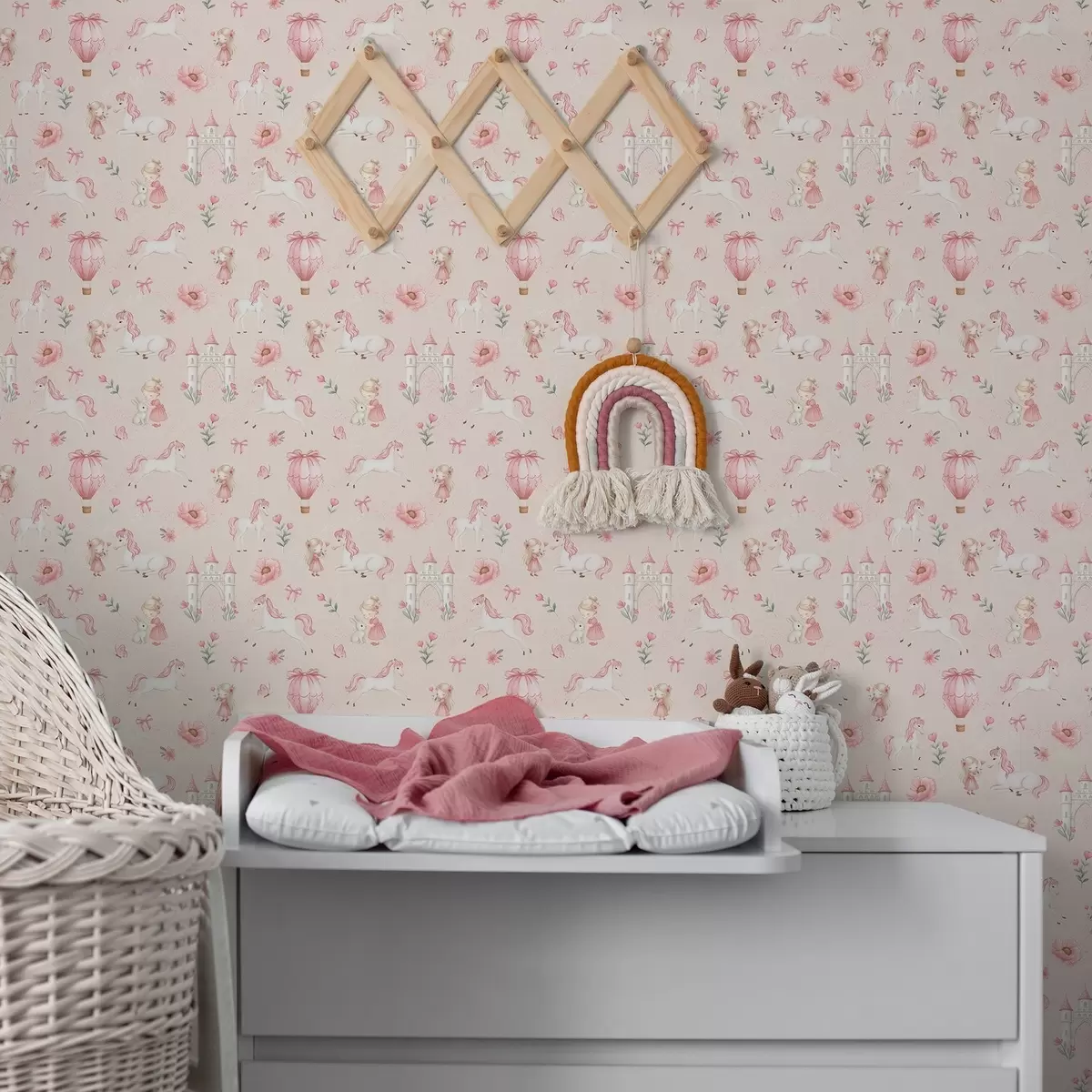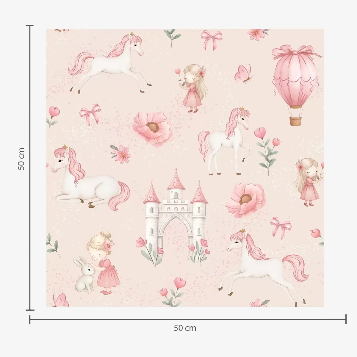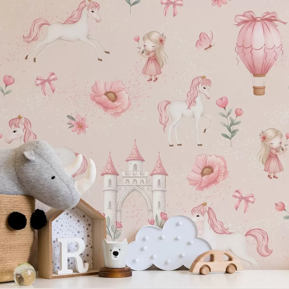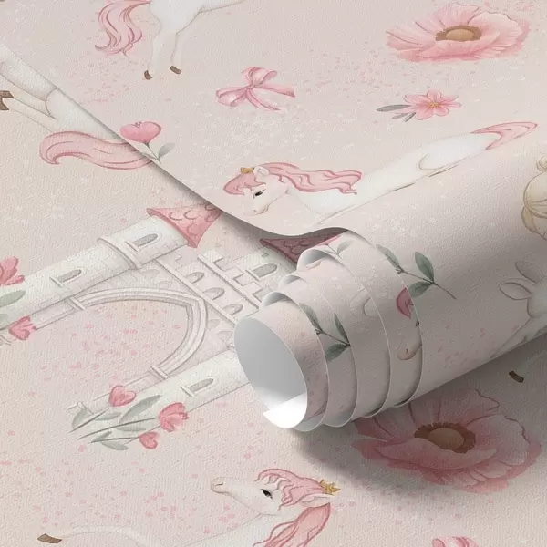 Tapet Rosa enhjørninger, små jenter og et slott på en myk bakgrunn Nr. a00957