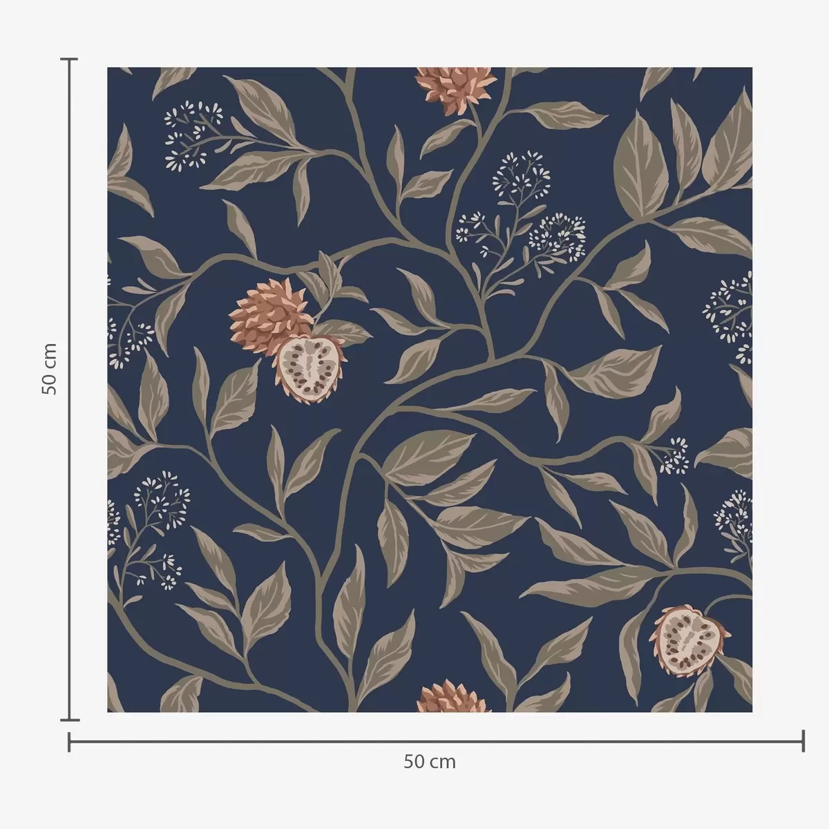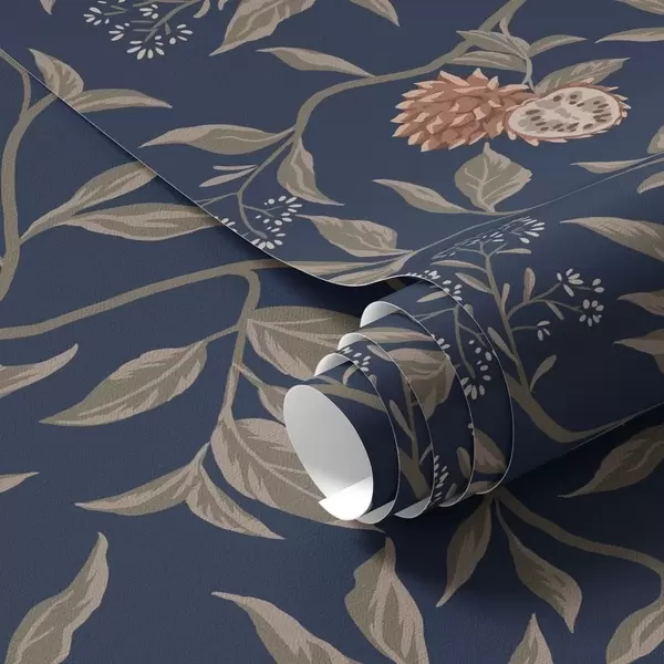 Tapet Blå hage med grener, frukt og små blomster Nr. a00959