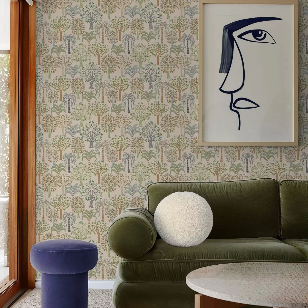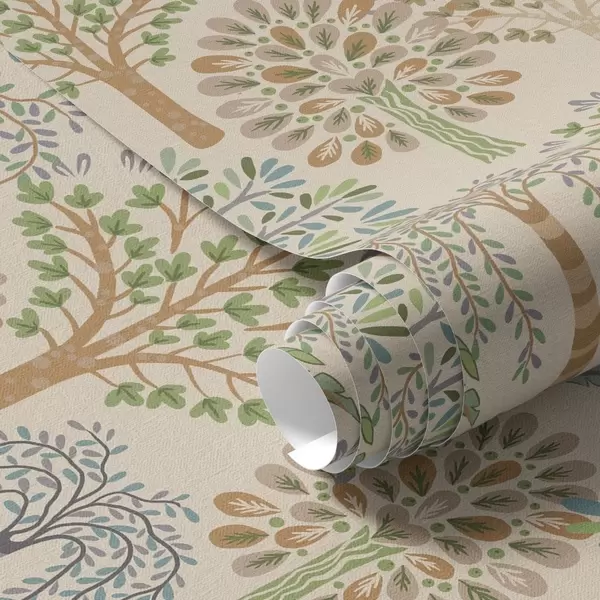 Tapet Dekorative trær i en myk, naturlig fargepalett Nr. a00960
