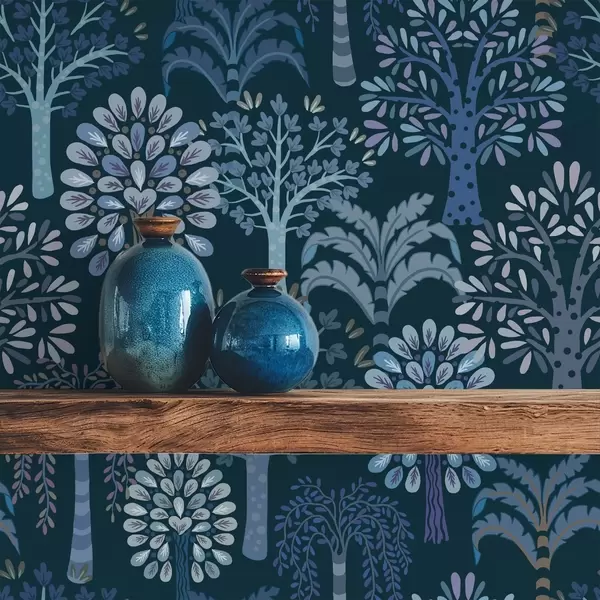 Tapet Natteskog med dekorative trær i blå nyanser Nr. a00960v2
