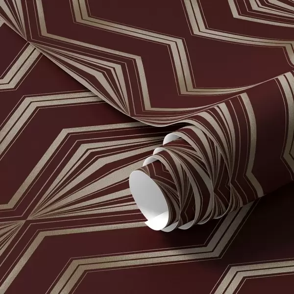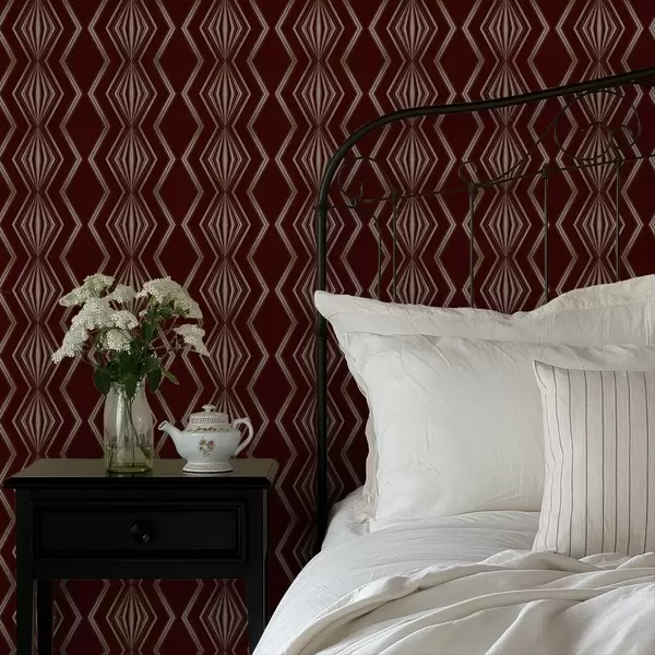 Tapet Burgunder bakgrunn med rytmiske romber og sikksakklinjer Nr. a00974