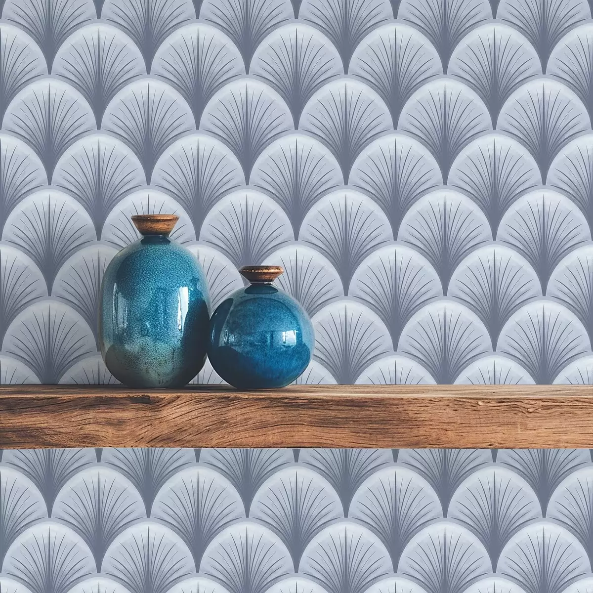 Tapet Blå viftebuer med stråler på en lyseblå bakgrunn Nr. a00978v1