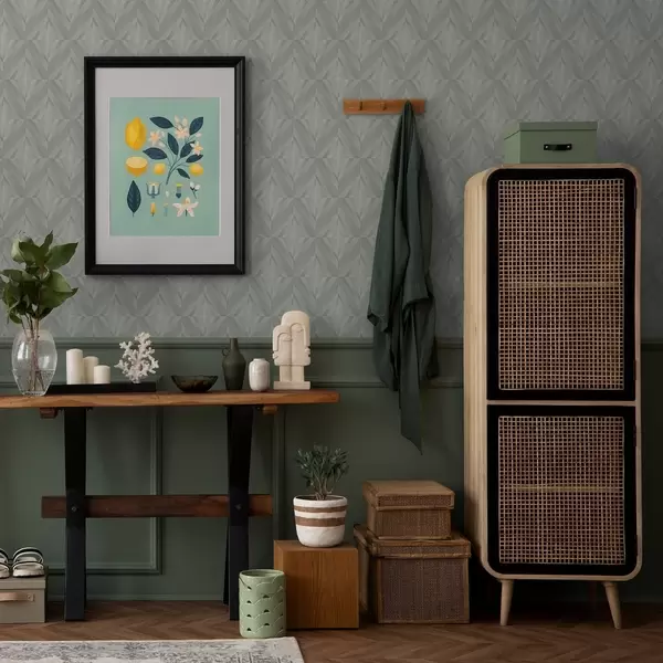 Tapet Diagonale streker som danner firkanter i en mintgrå palett Nr. a00983v1