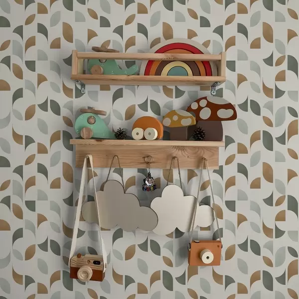 Tapet Abstrakte halvsirkler og blader i grønt og terrakotta Nr. a00985